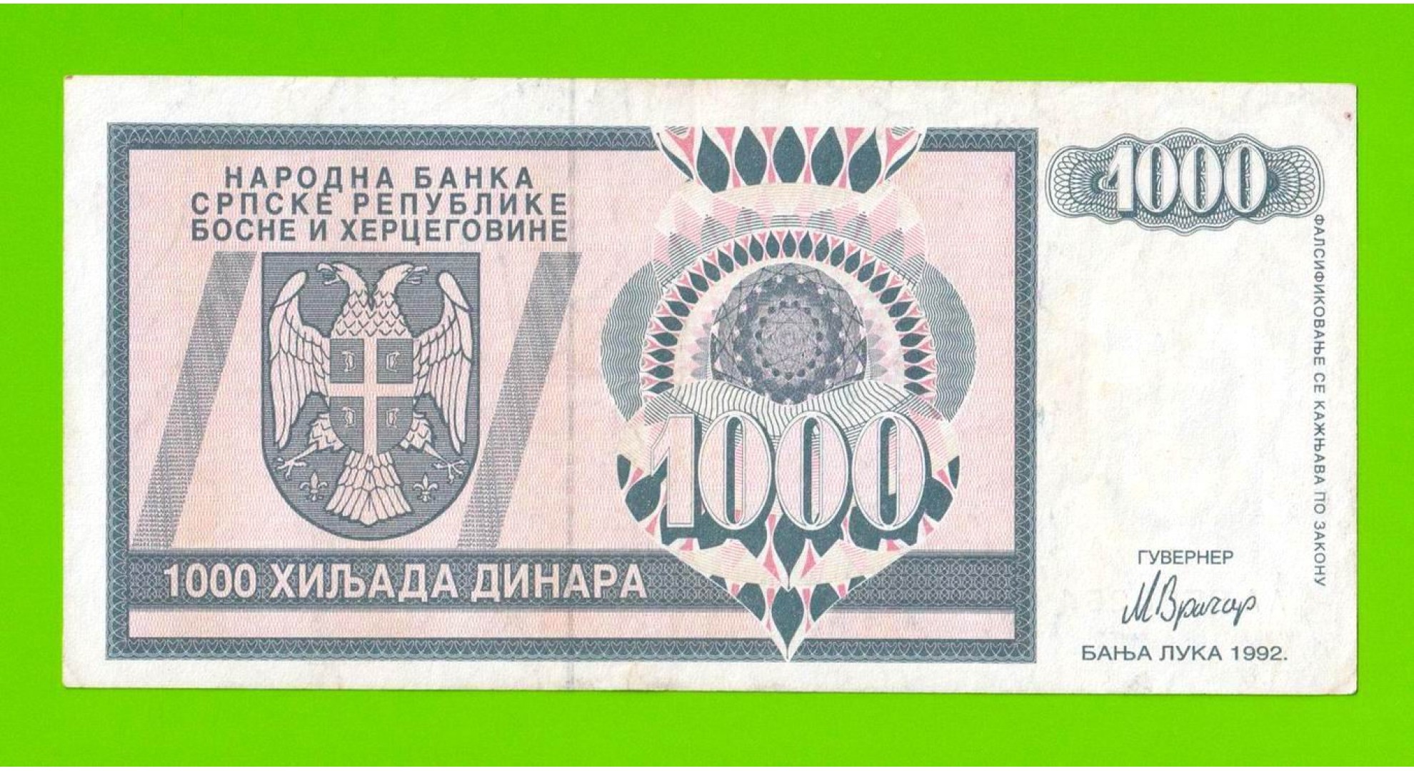 Босния и Герцеговина (Республика Сербская) - 1000 динаров - 1992 (AA)