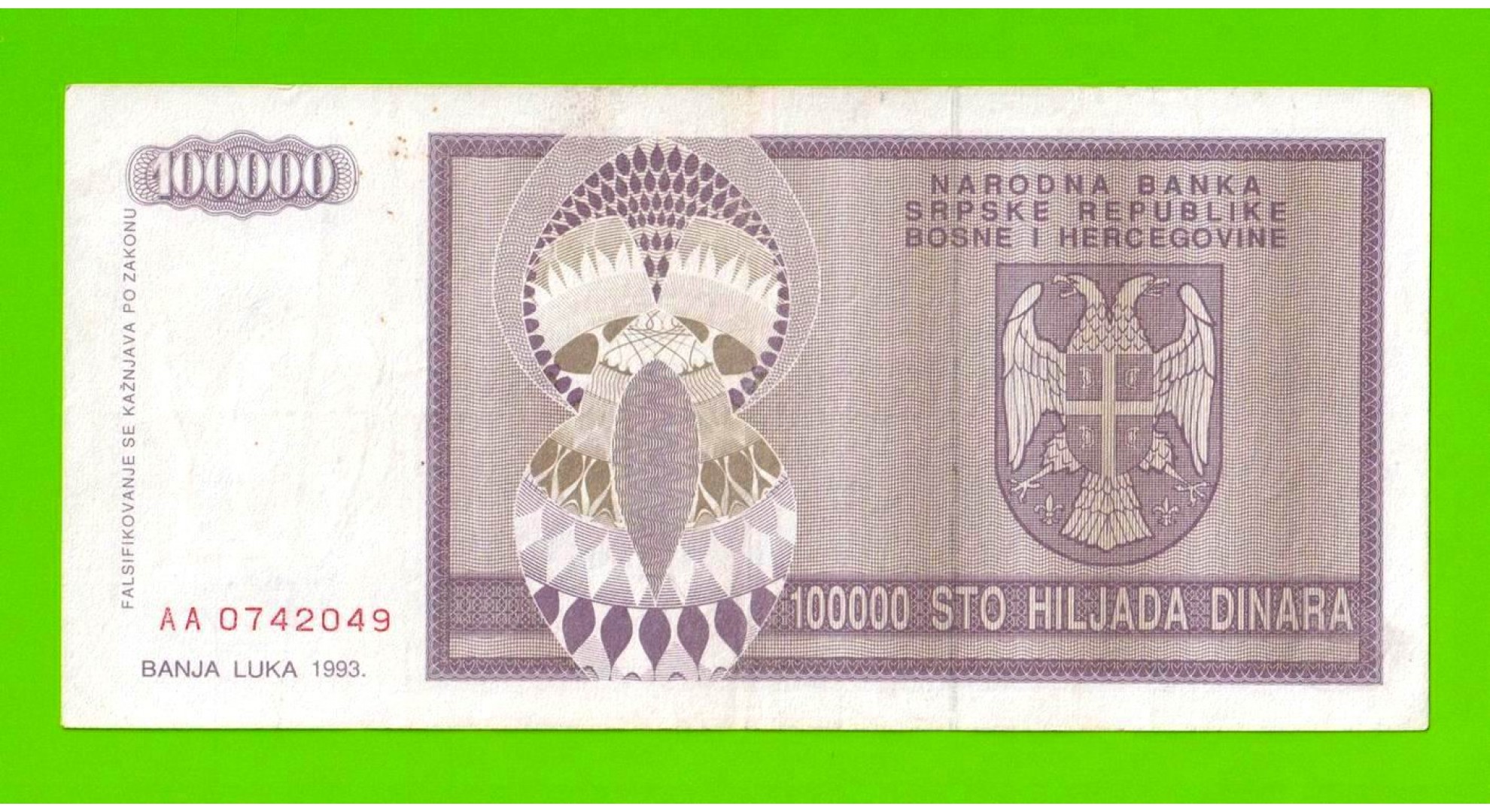 Босния и Герцеговина (Республика Сербская) - 100000 динаров - 1993 (AA)