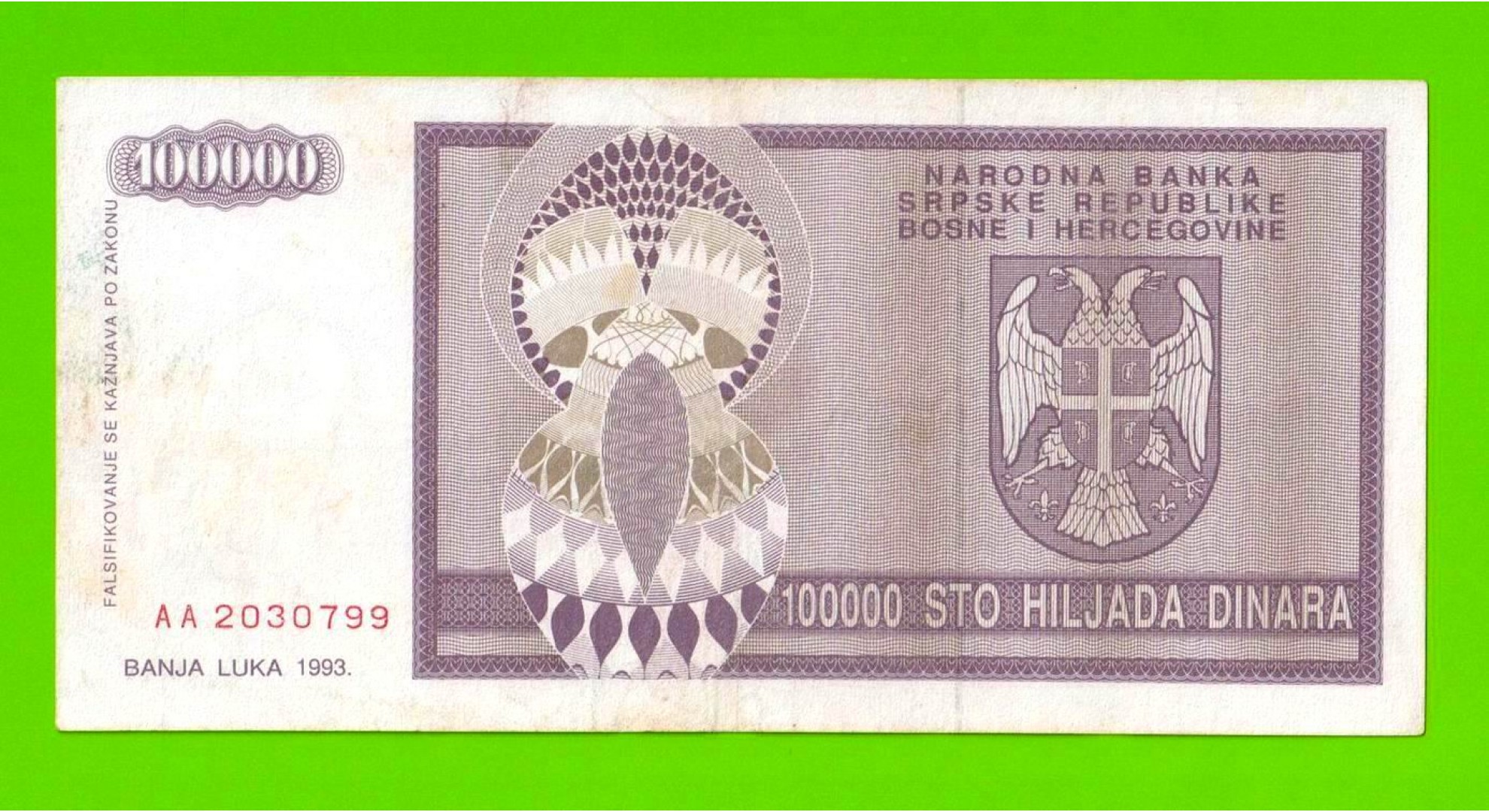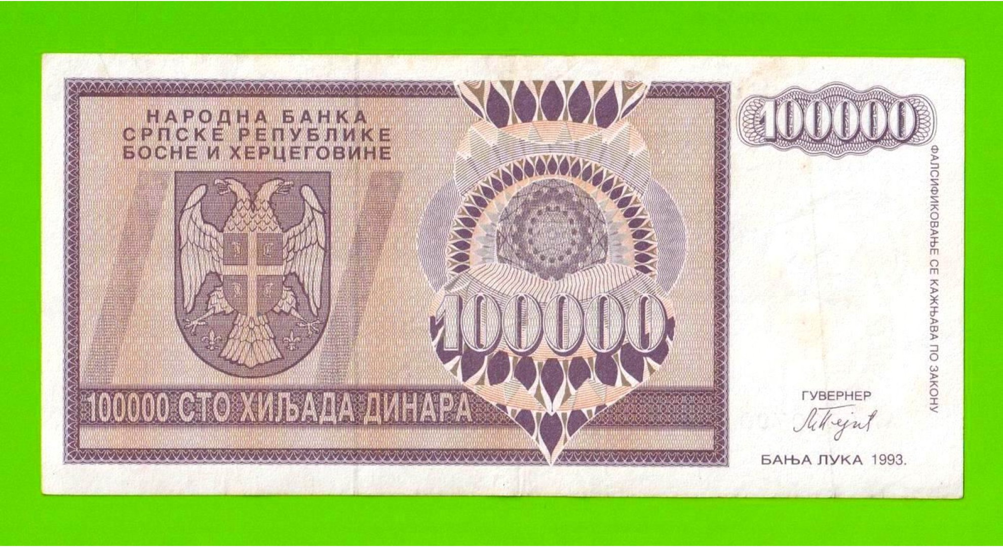 Босния и Герцеговина (Республика Сербская) - 100000 динаров - 1993 (AA)