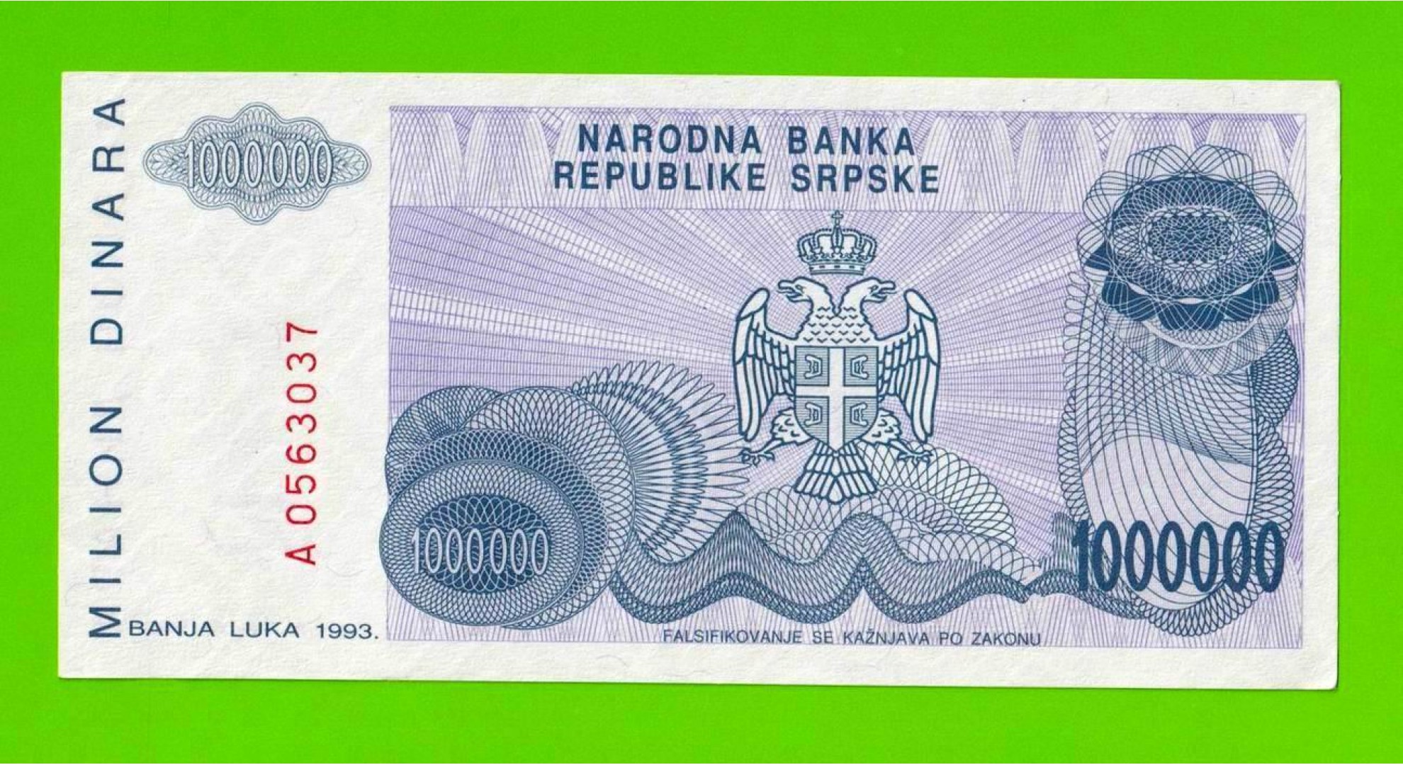 Босния и Герцеговина (Республика Сербская) - 1000000 / 1 миллион динаров - 1993 (A) - aUNC!!!
