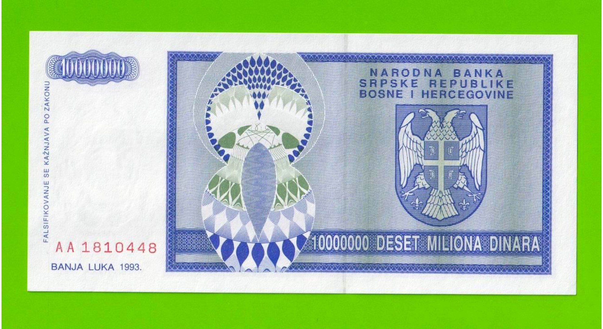 Босния и Герцеговина (Республика Сербская) - 10000000 / 10 миллионов динаров - 1993 (AA) - UNC!!!
