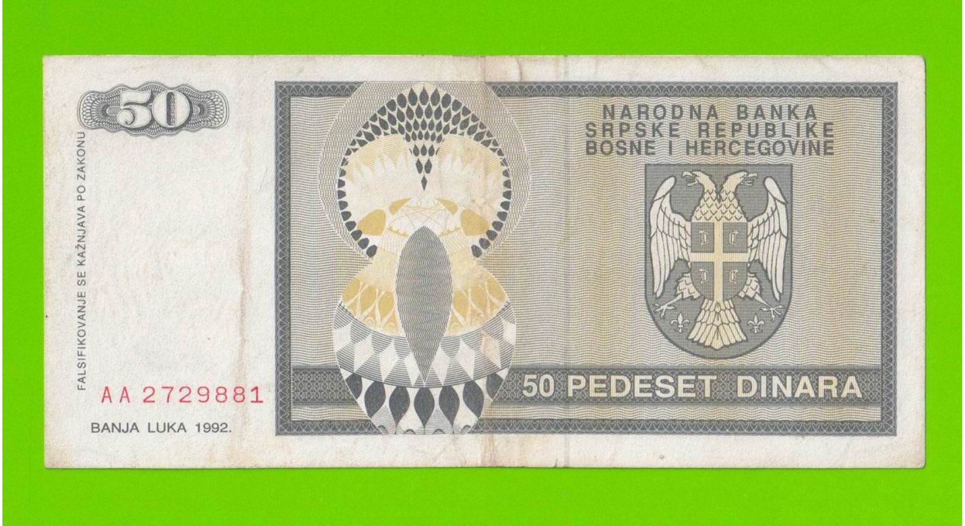 Босния и Герцеговина (Республика Сербская) - 50 динаров - 1992 (AA)