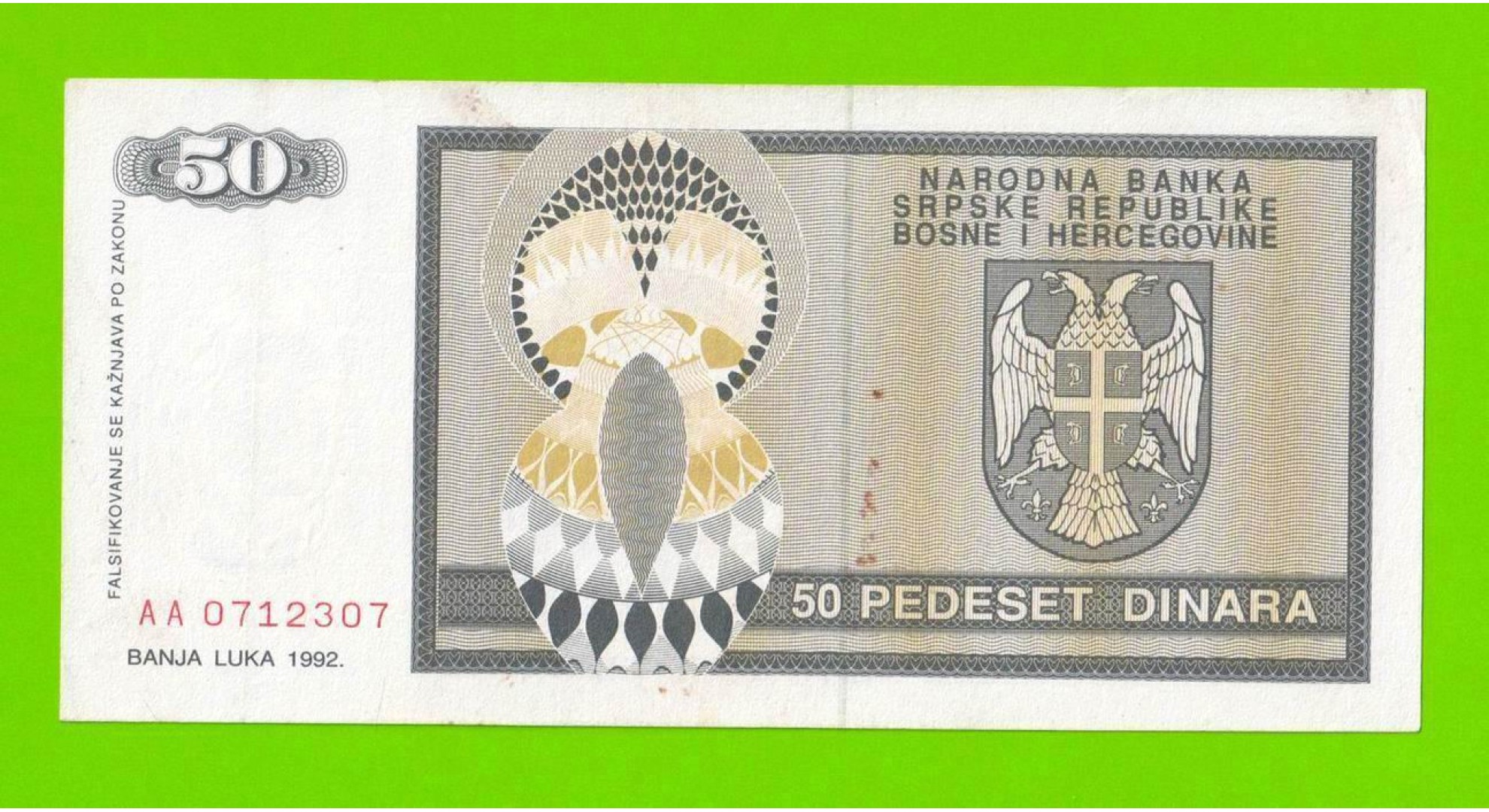 Босния и Герцеговина (Республика Сербская) - 50 динаров - 1992 (AA)