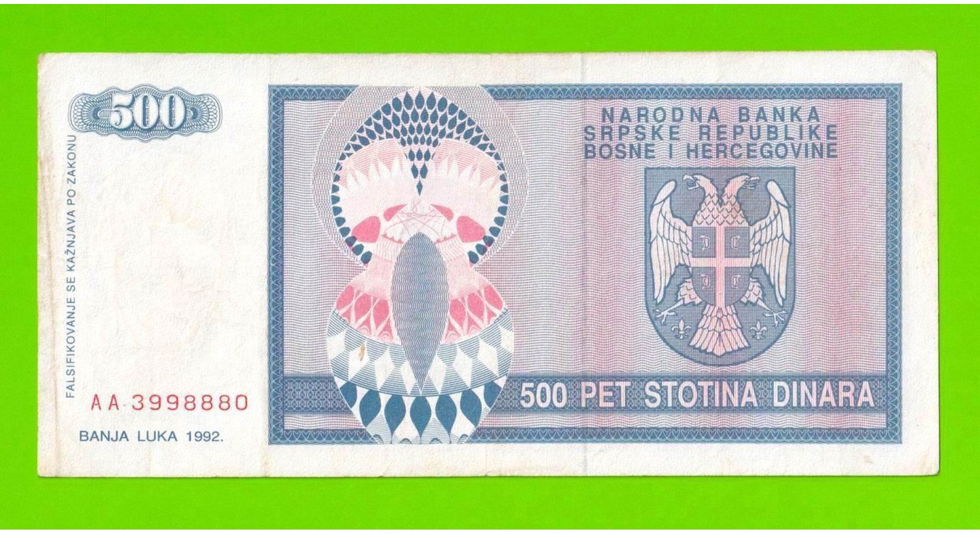 Босния и Герцеговина (Республика Сербская) - 500 динаров - 1992 (AA)