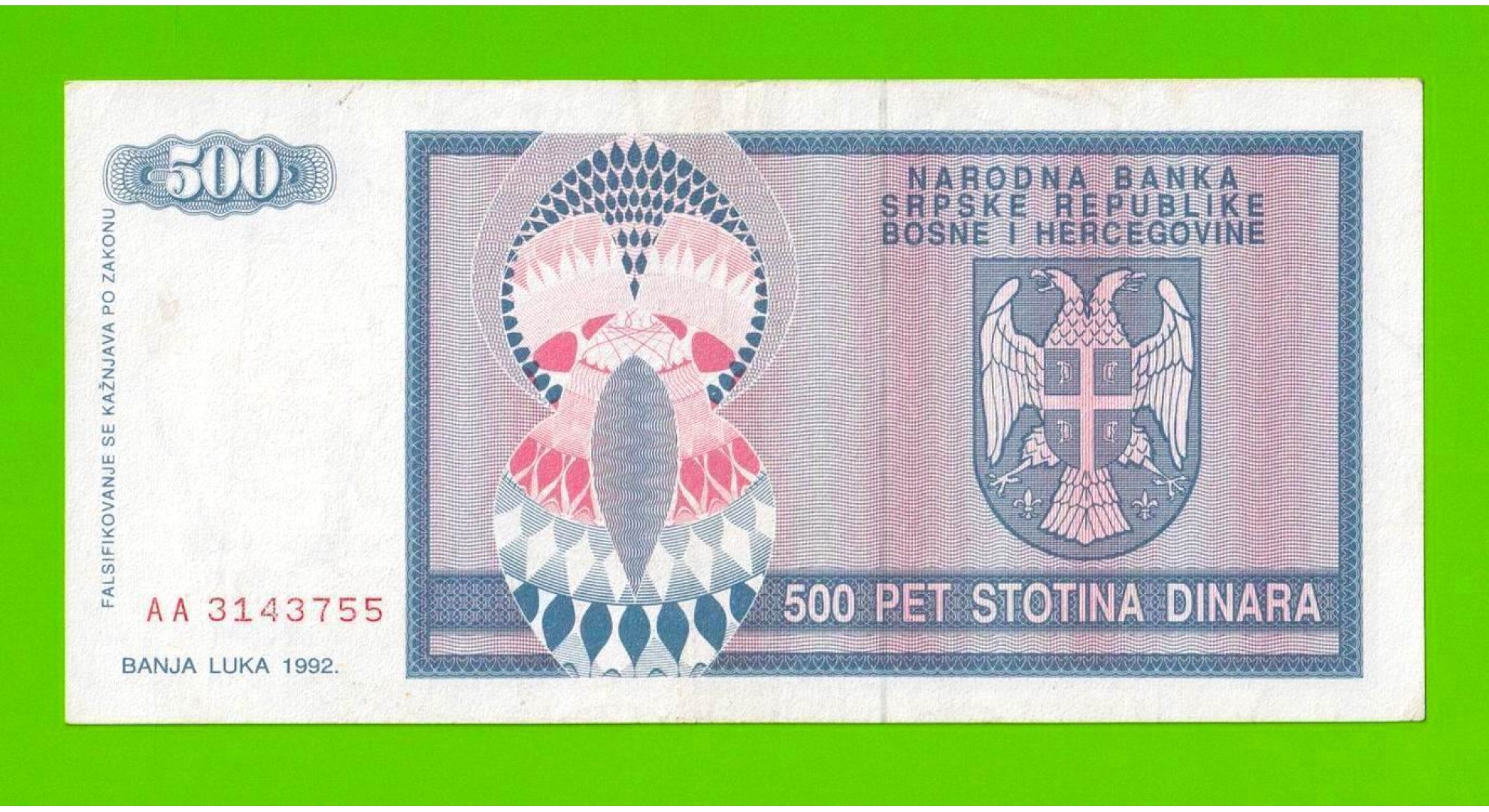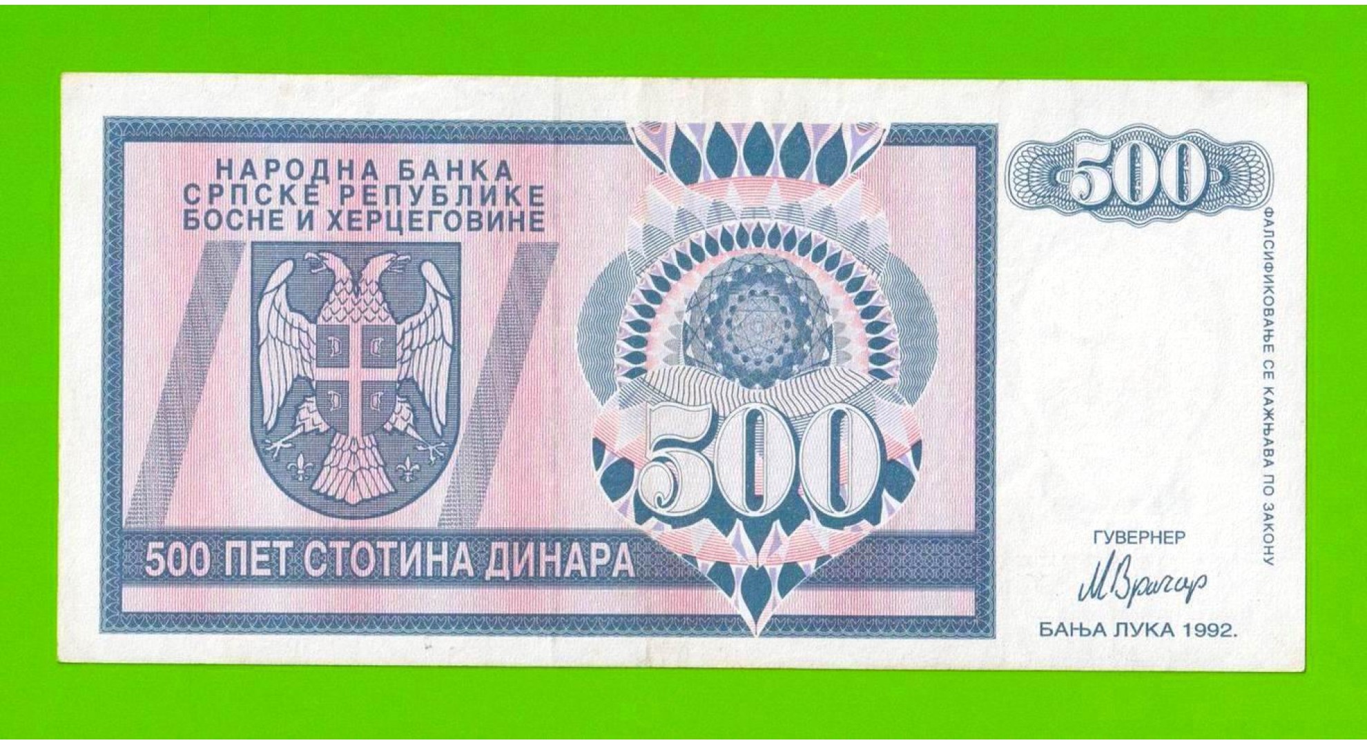 Босния и Герцеговина (Республика Сербская) - 500 динаров - 1992 (AA)