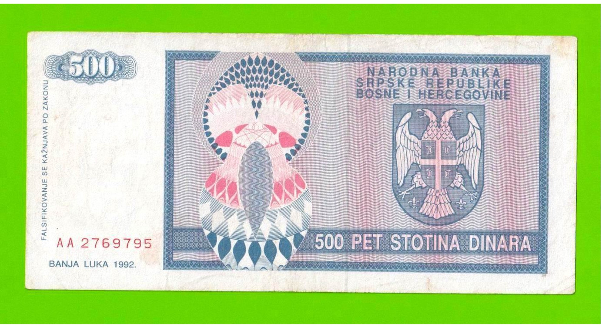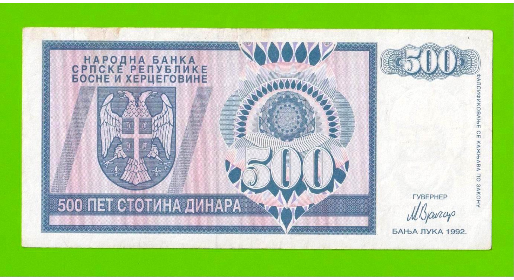 Босния и Герцеговина (Республика Сербская) - 500 динаров - 1992 (AA)