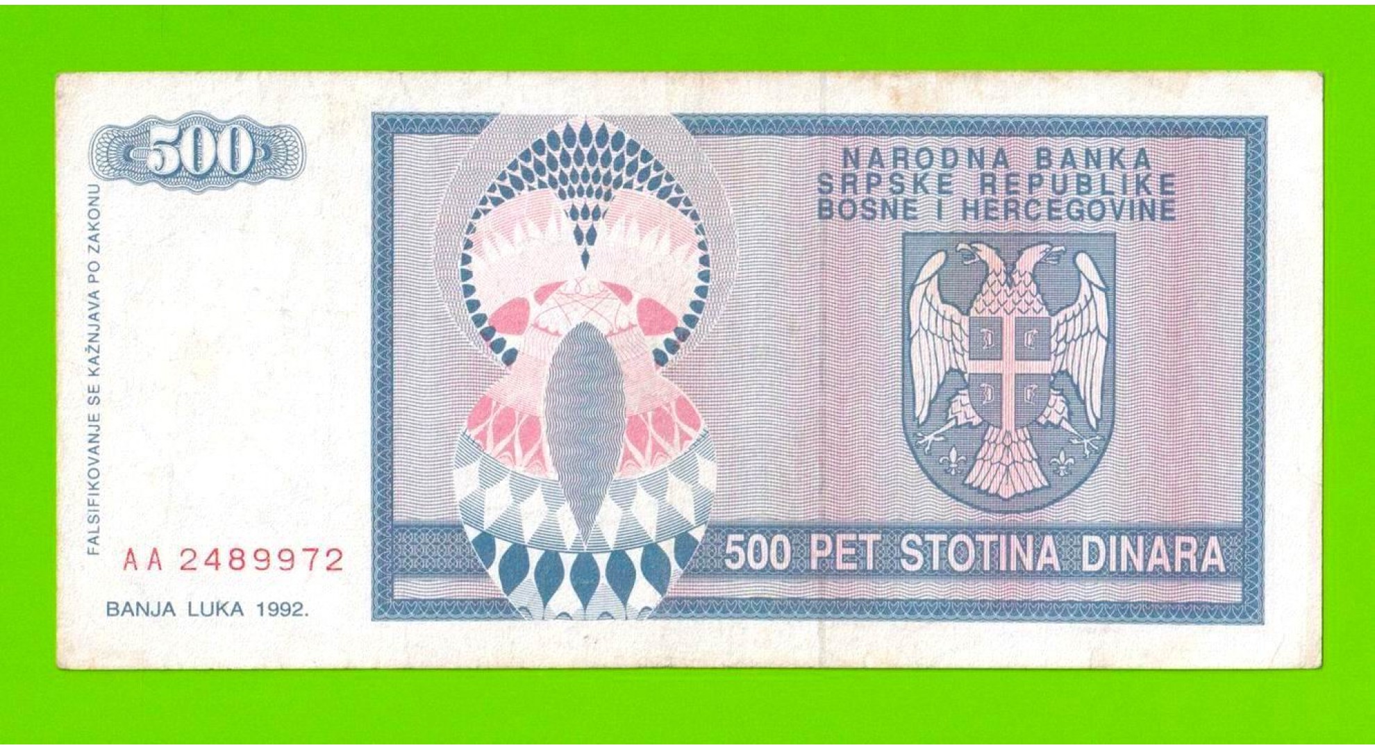 Босния и Герцеговина (Республика Сербская) - 500 динаров - 1992 (AA)