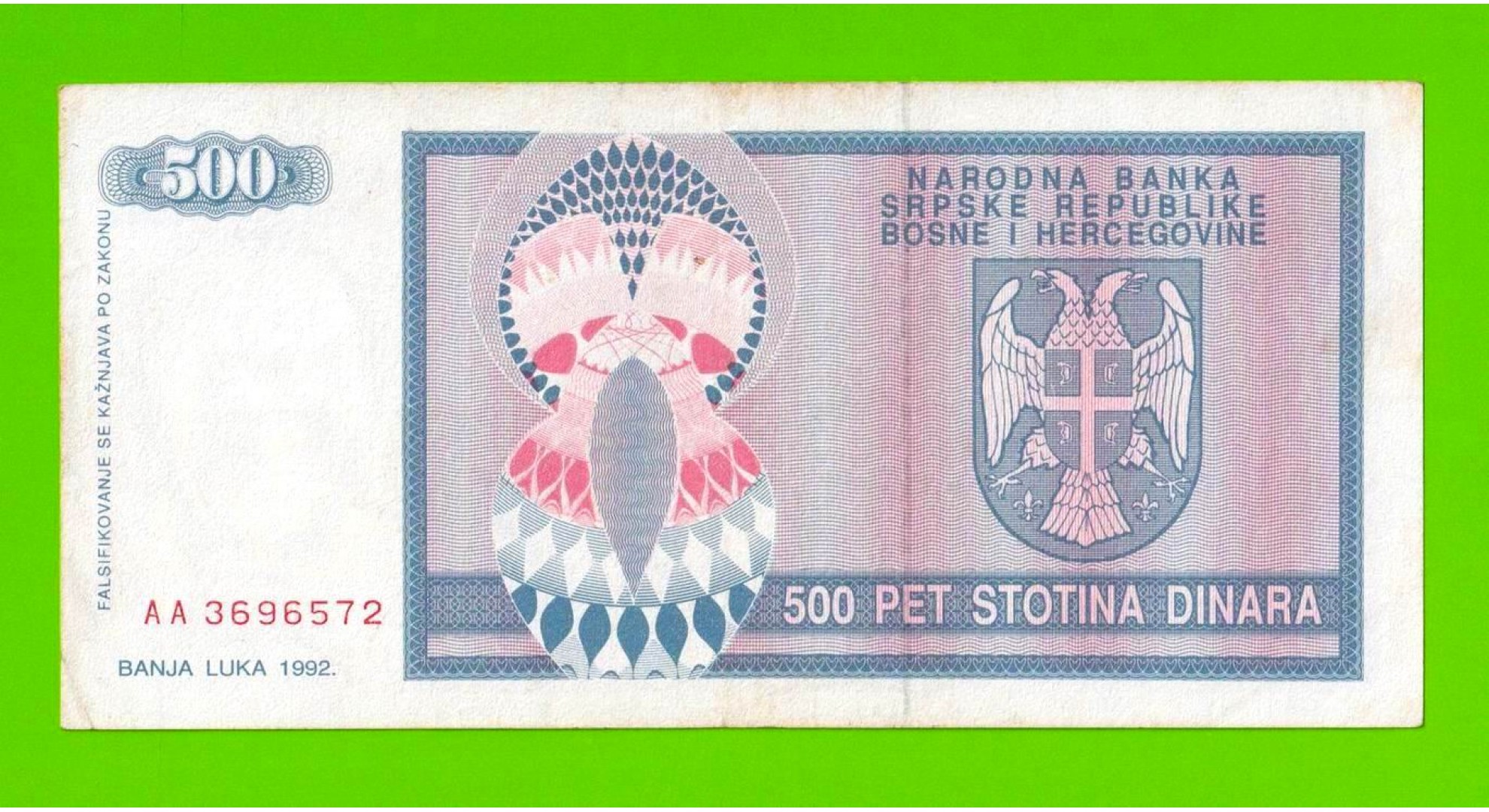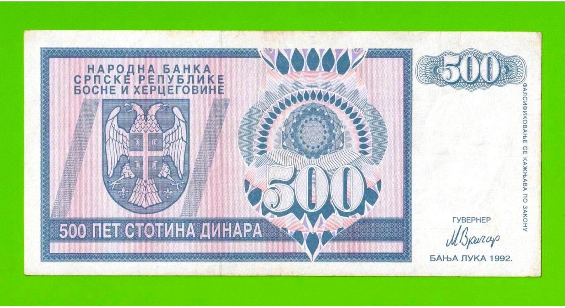 Босния и Герцеговина (Республика Сербская) - 500 динаров - 1992 (AA)