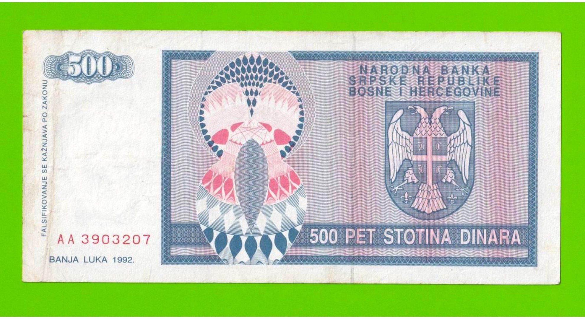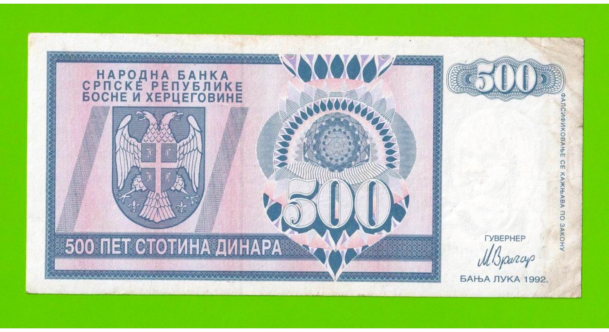Босния и Герцеговина (Республика Сербская) - 500 динаров - 1992 (AA)