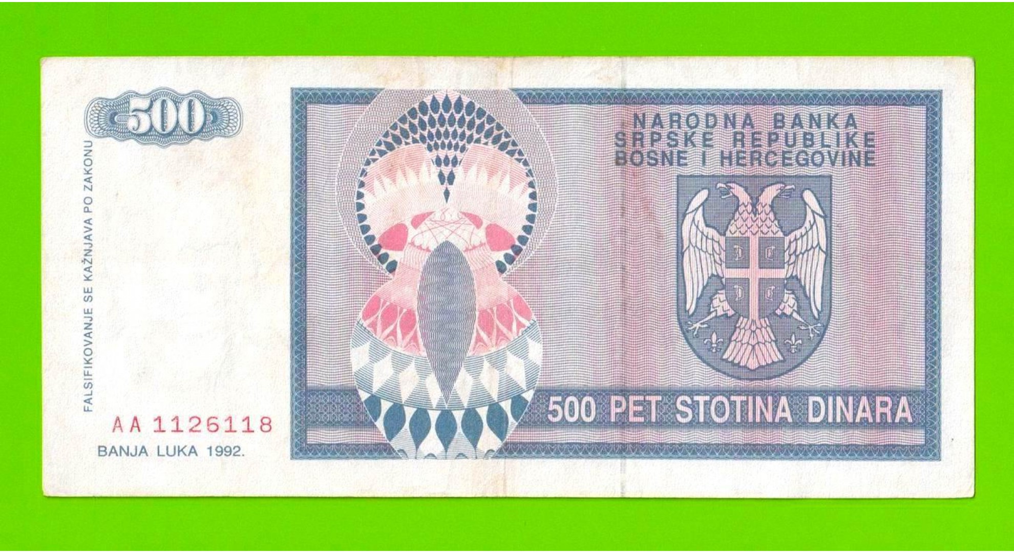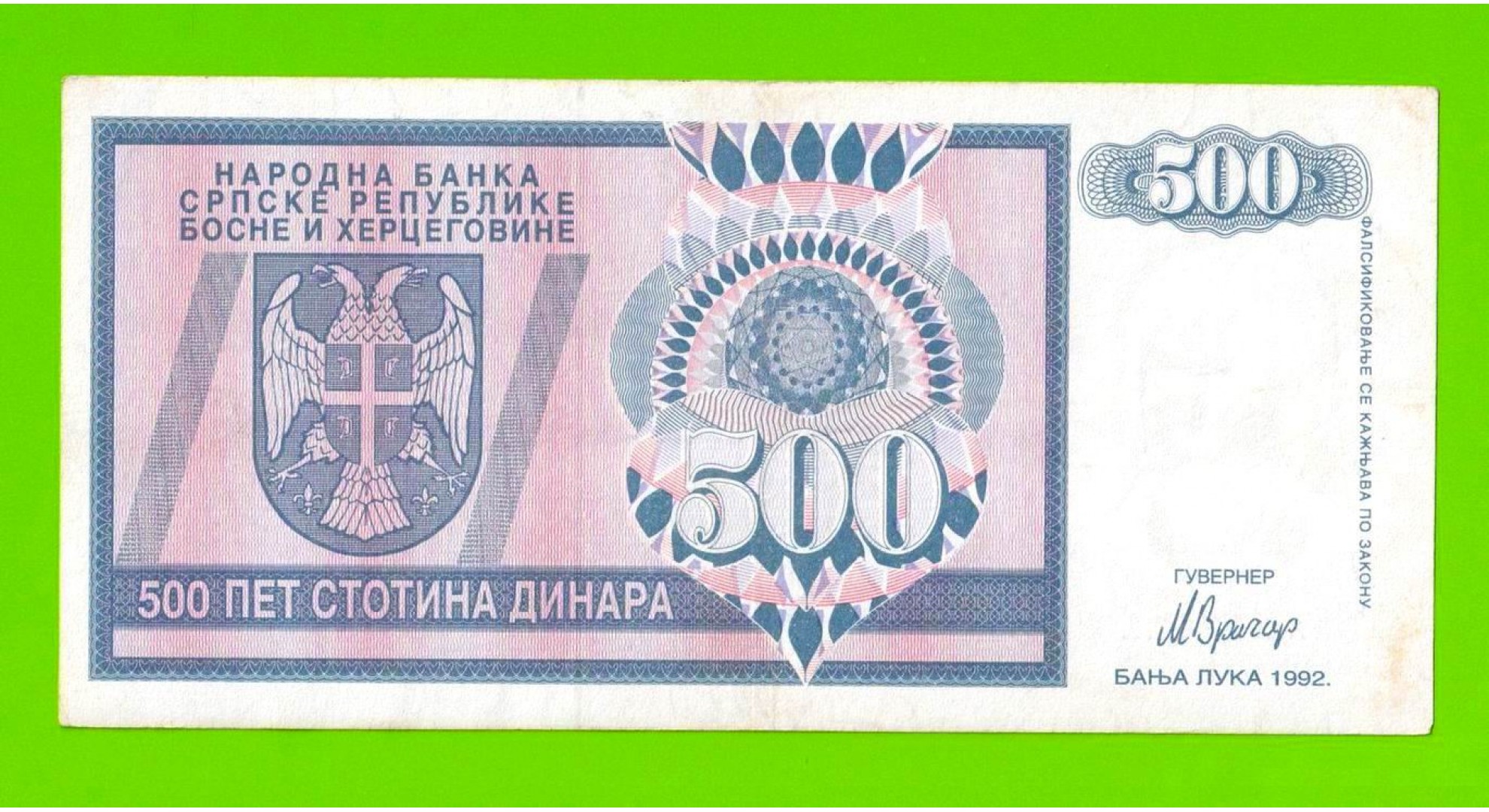 Босния и Герцеговина (Республика Сербская) - 500 динаров - 1992 (AA)