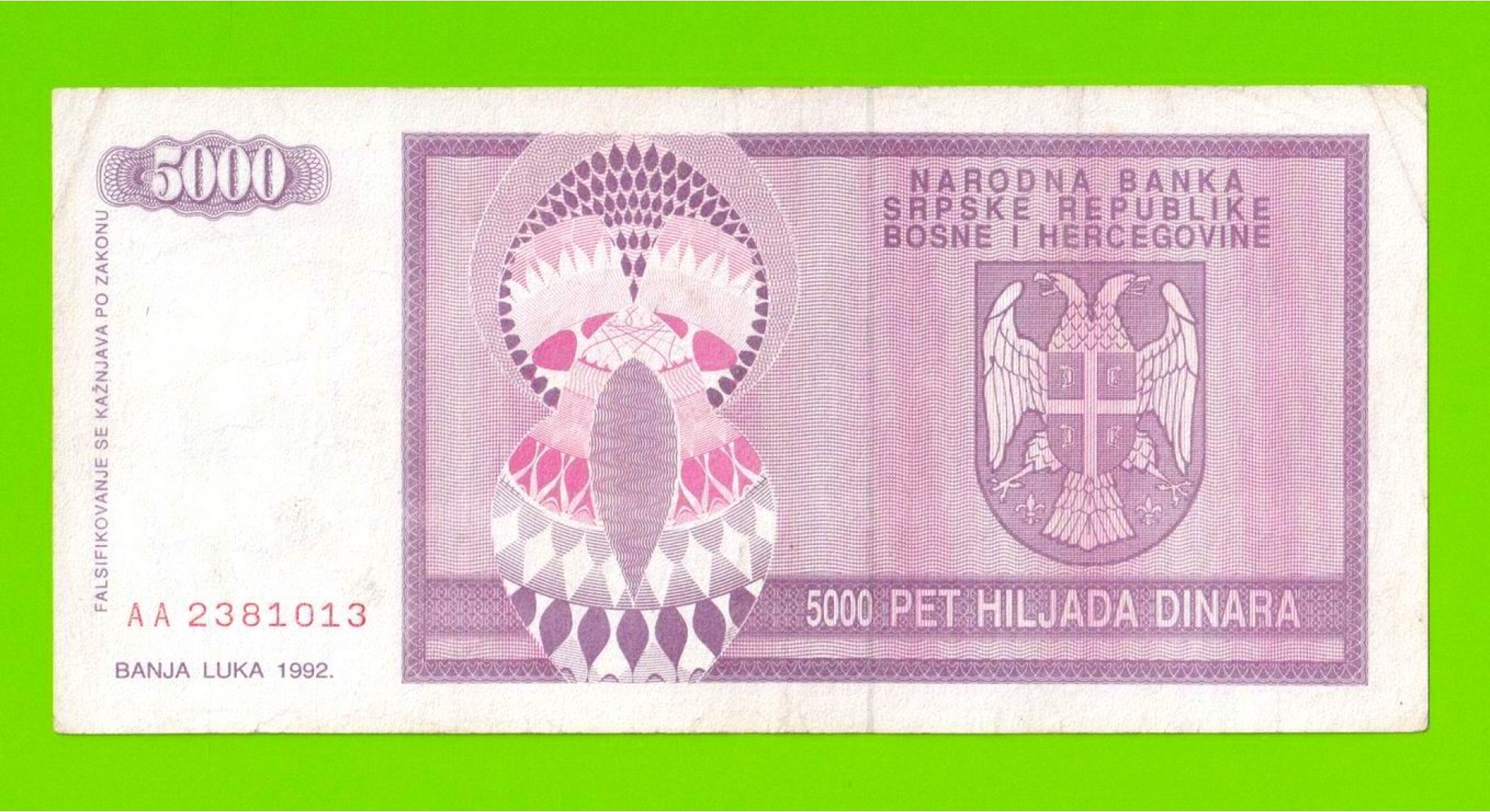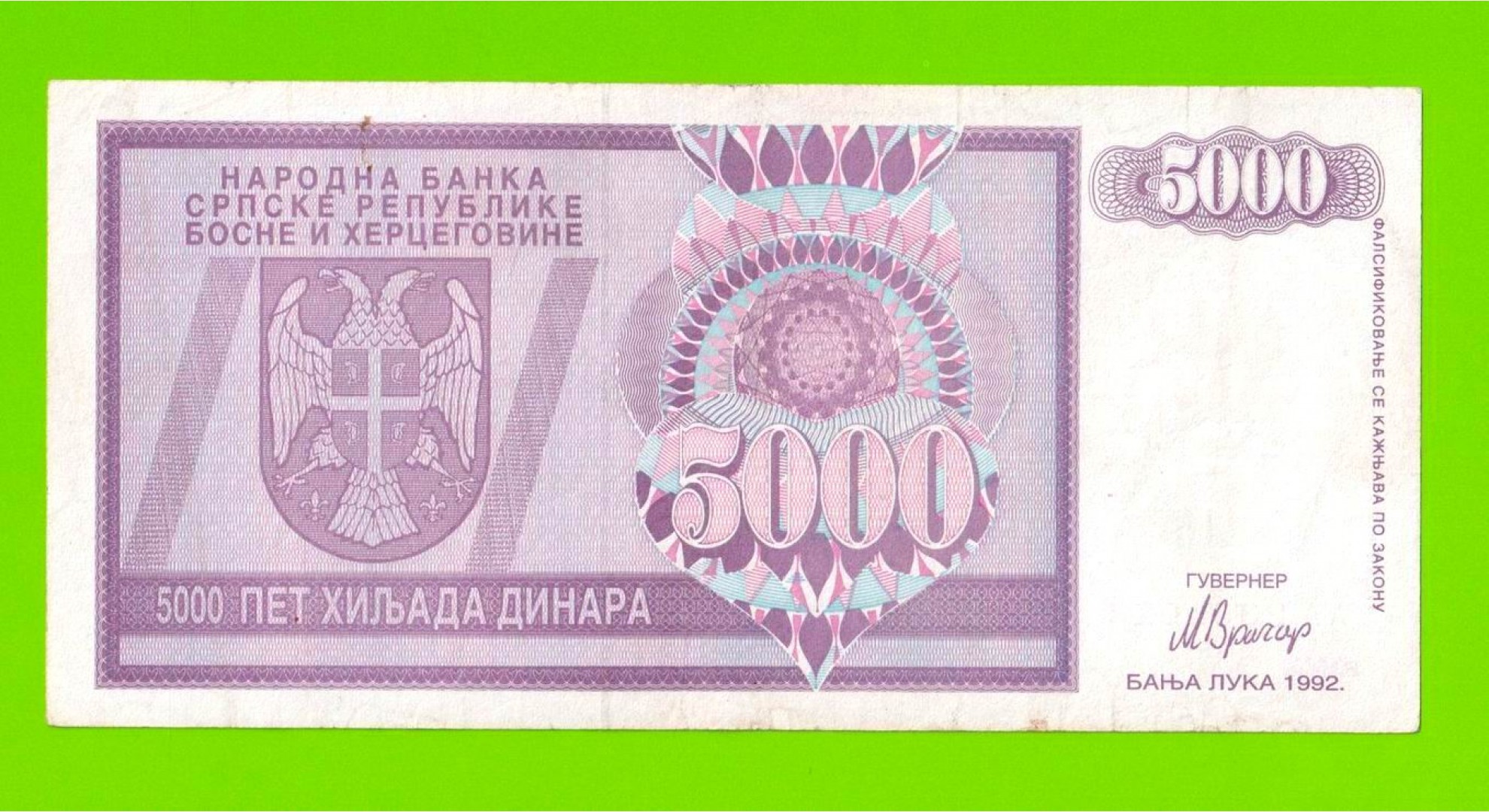 Босния и Герцеговина (Республика Сербская) - 5000 динаров - 1992 (AA)