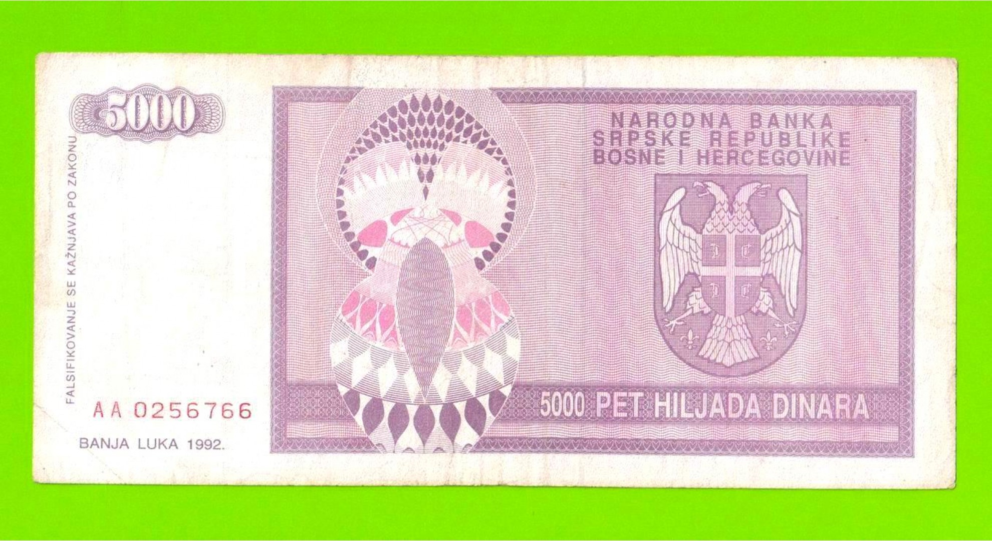 Босния и Герцеговина (Республика Сербская) - 5000 динаров - 1992 (AA)