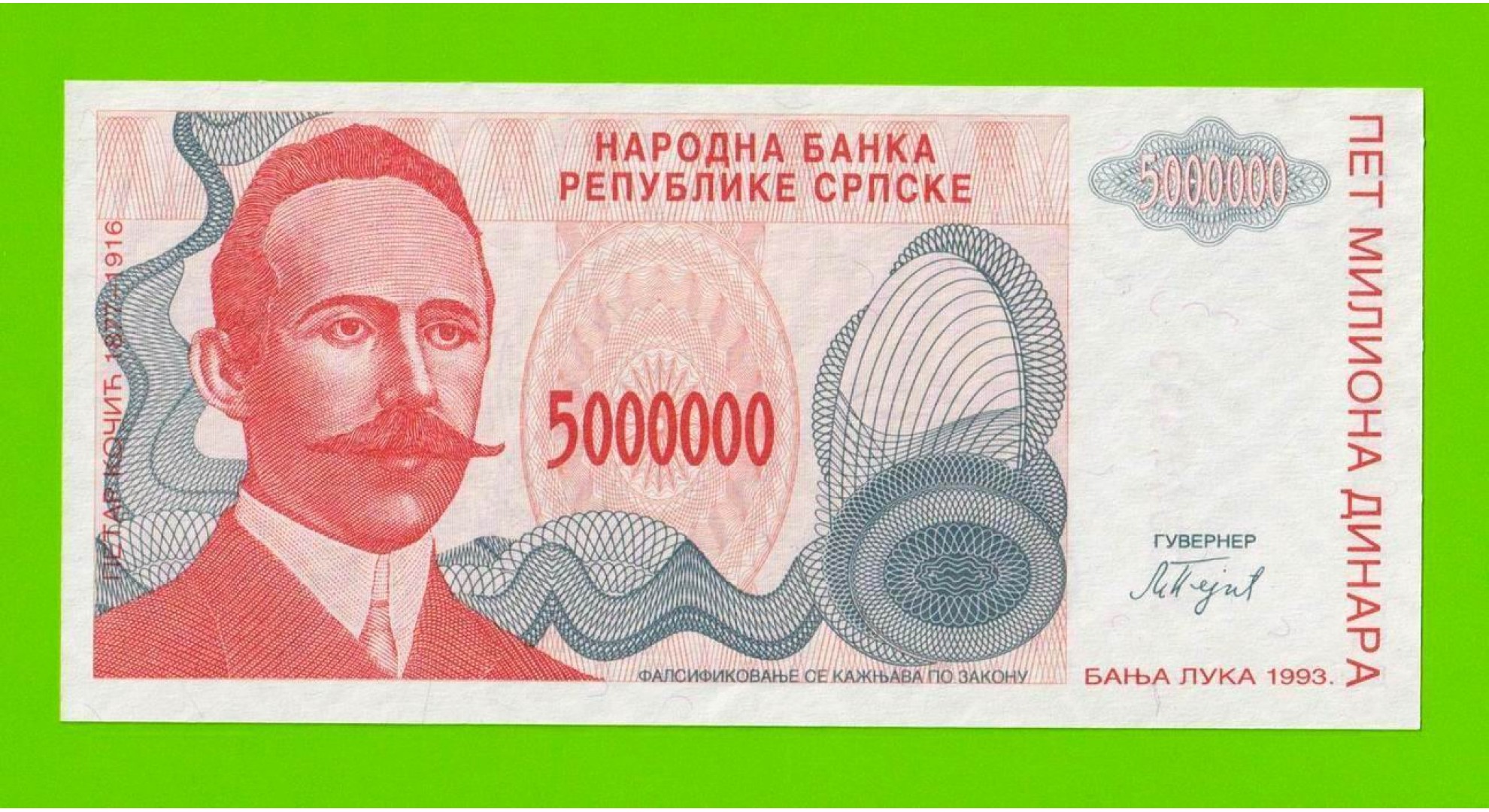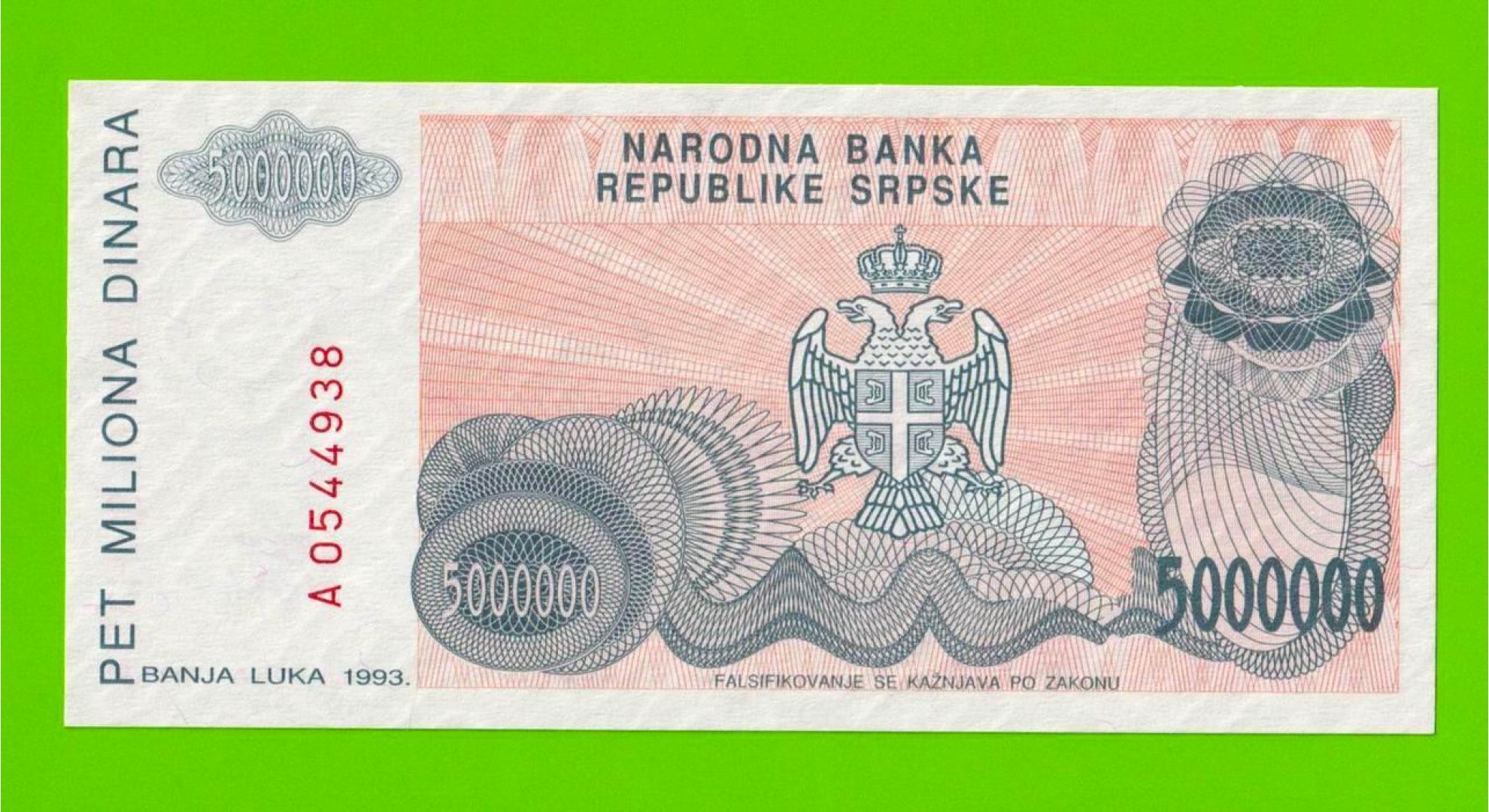 Босния и Герцеговина (Республика Сербская) - 5000000 / 5 миллионов динаров - 1993 (A) - UNC!!!