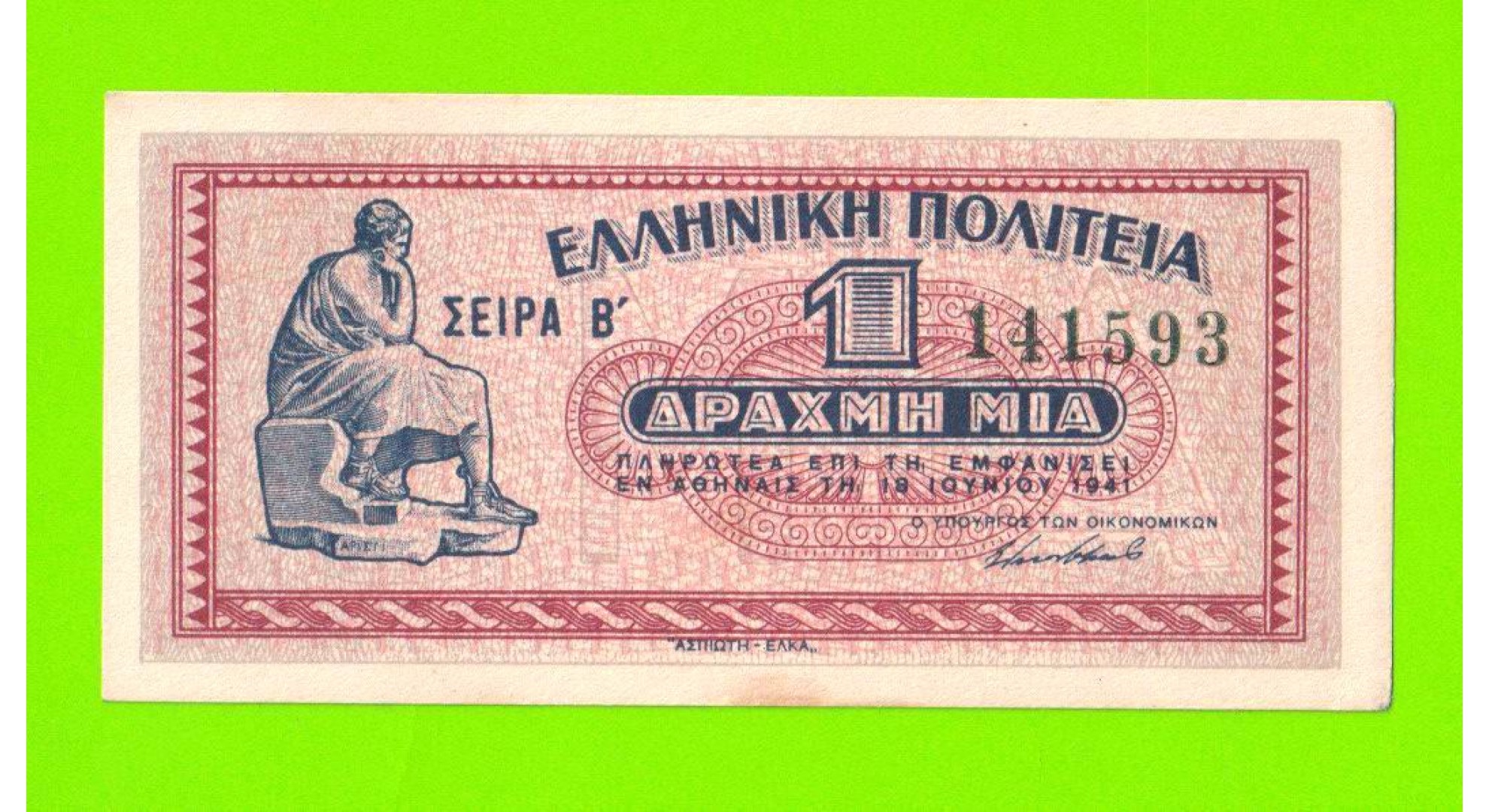 Греция - 1 драхма - 1941 - XF!!!