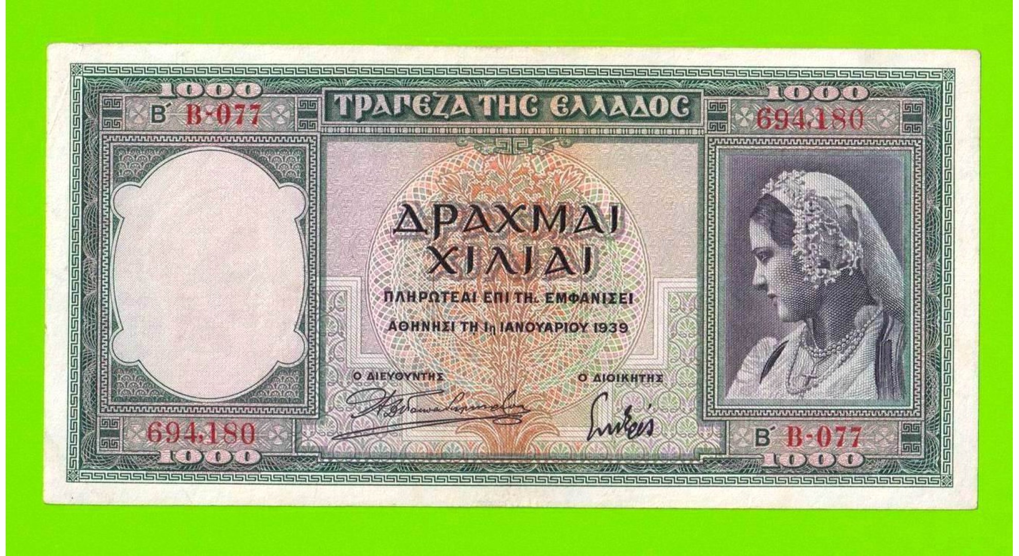Греция - 1000 драхм - 1939