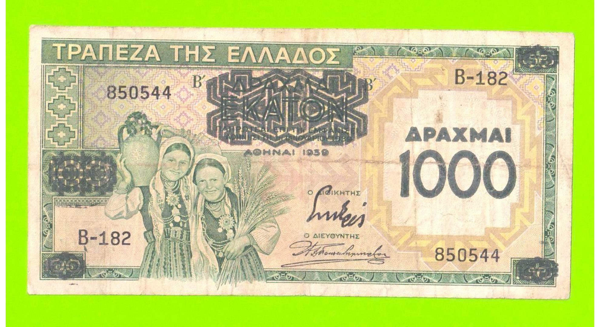 Греция - 1000 драхм - 1939 (надпечатка) - временный выпуск