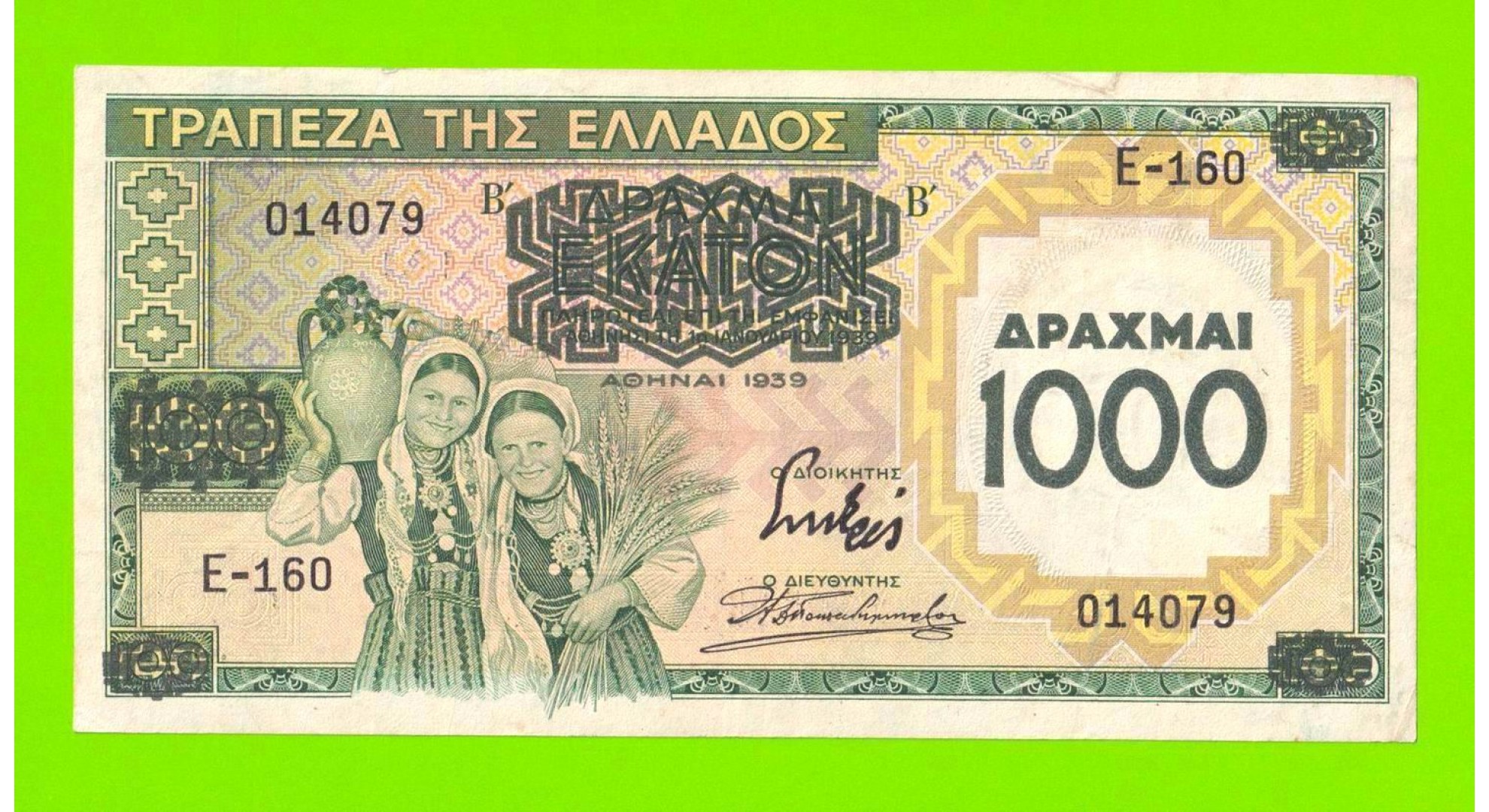 Греция - 1000 драхм - 1939 (надпечатка) - временный выпуск