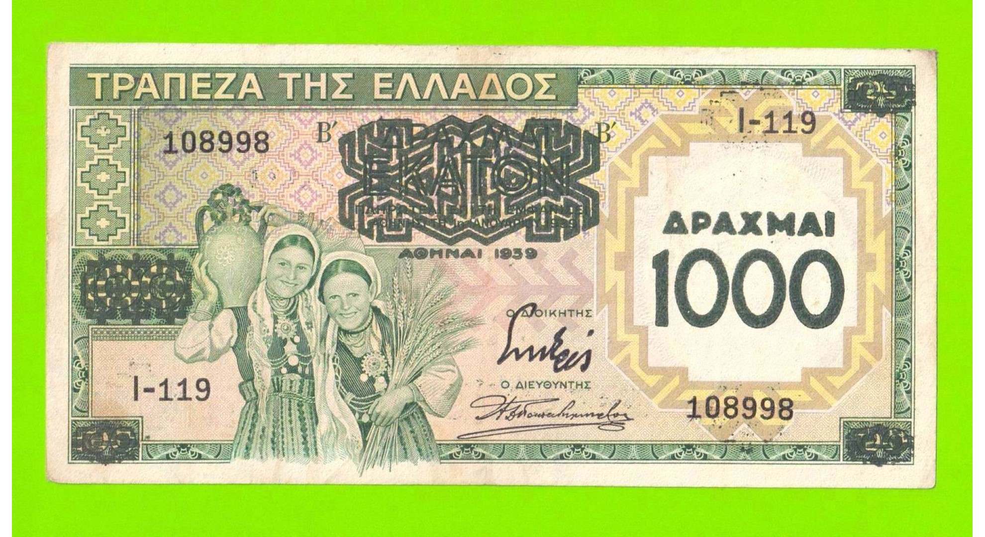 Греция - 1000 драхм - 1939 (надпечатка) - временный выпуск