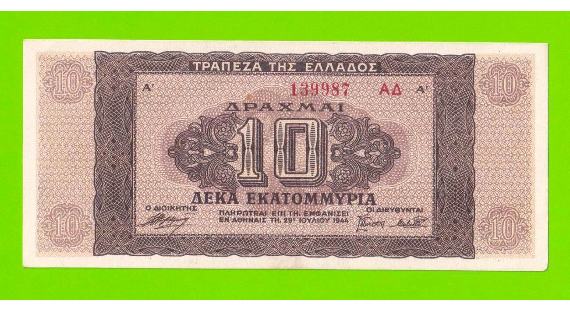 Греция - 10000000 / 10 миллионов драхм - 1944 - XF+++!!!