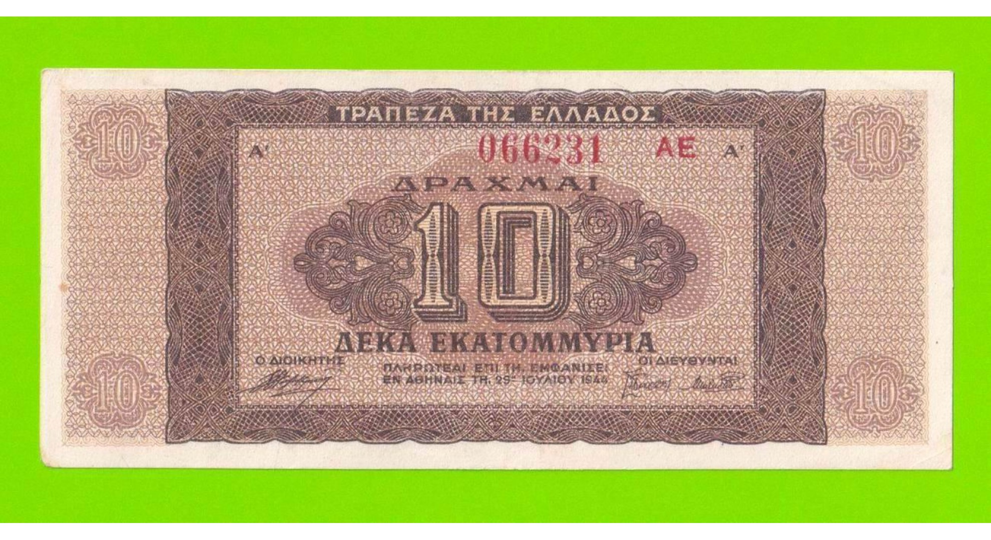 Греция - 10000000 / 10 миллионов драхм - 1944 - XF!!!