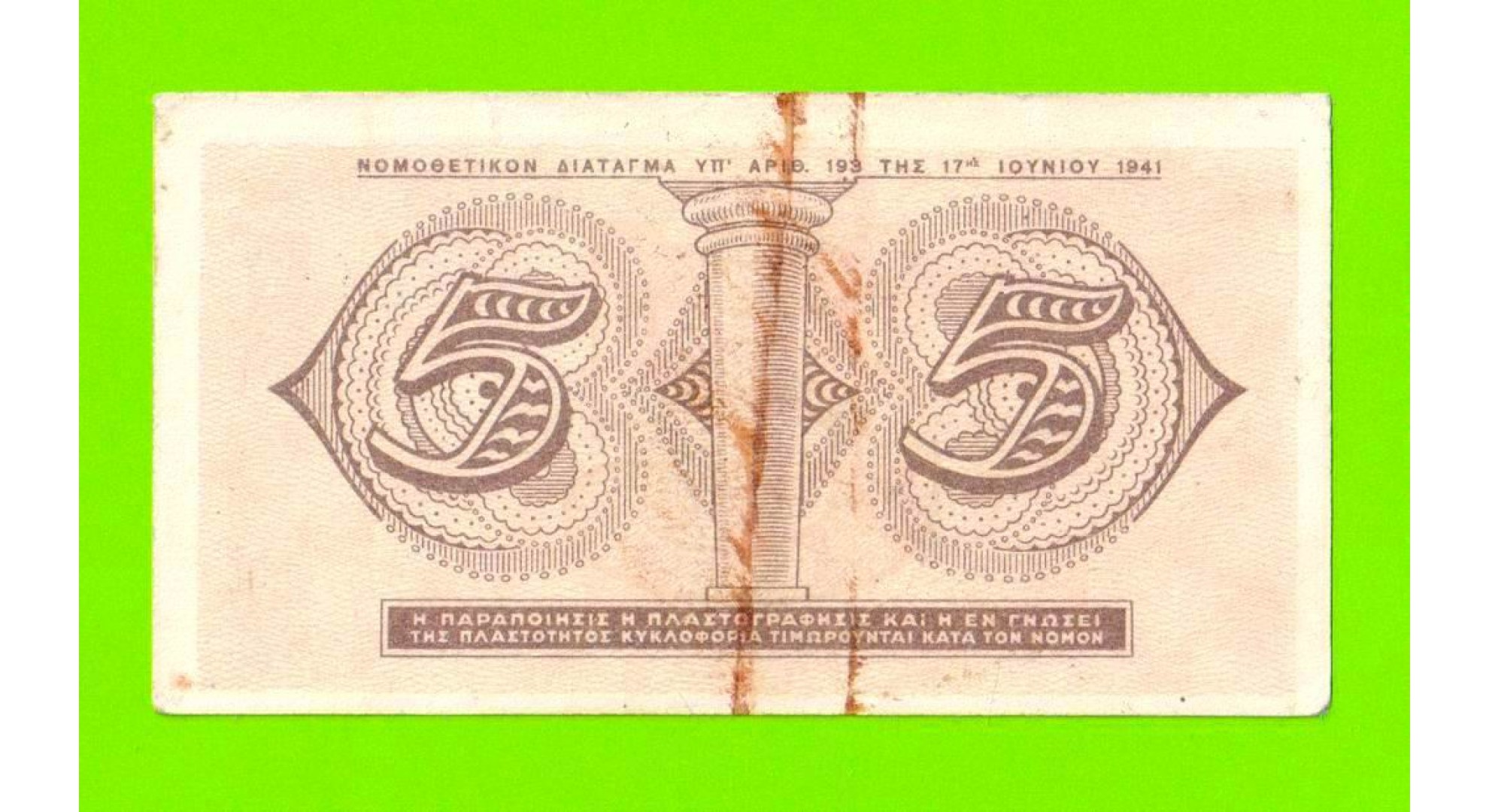 Греция - 5 драхм - 1941