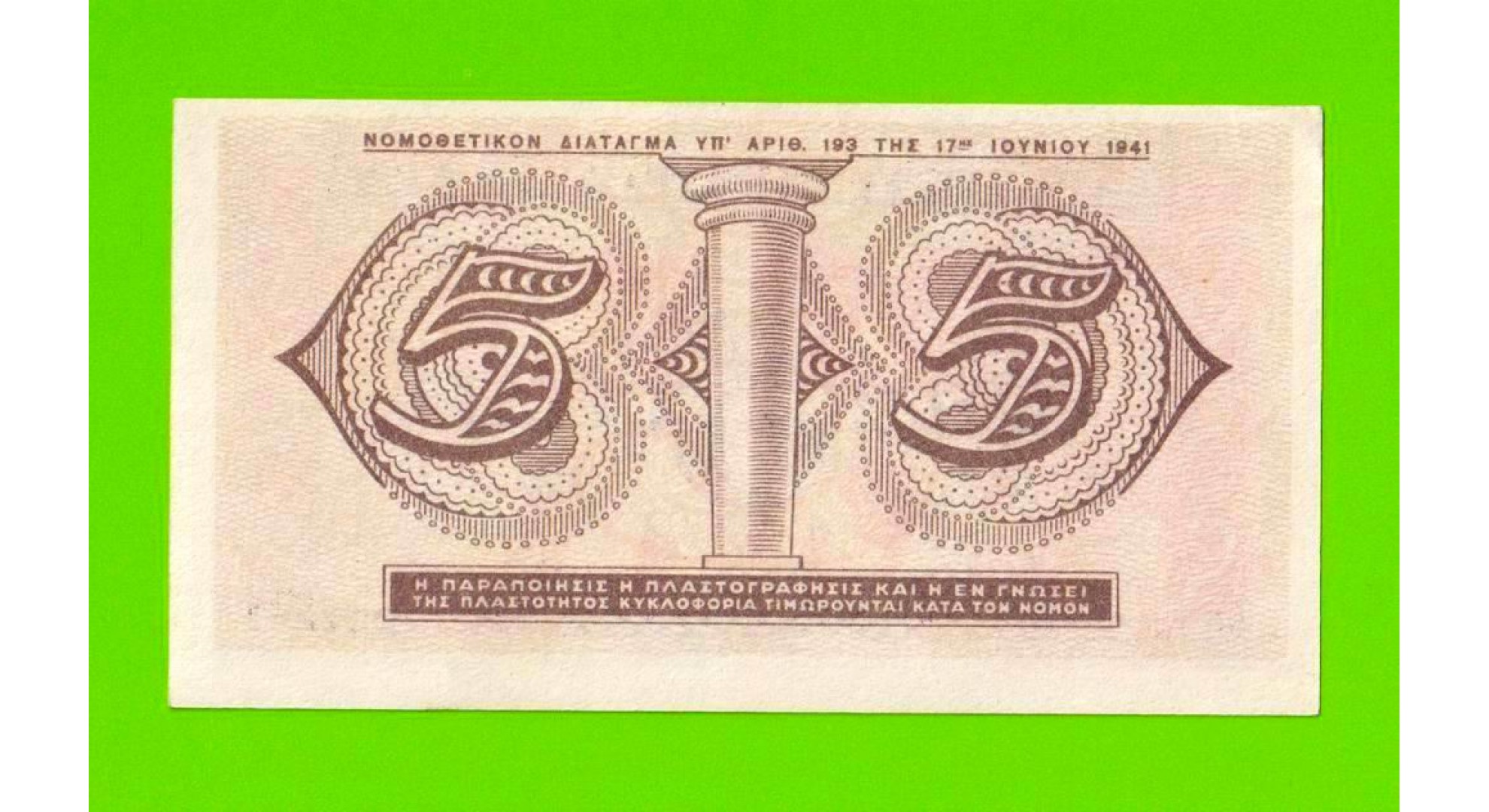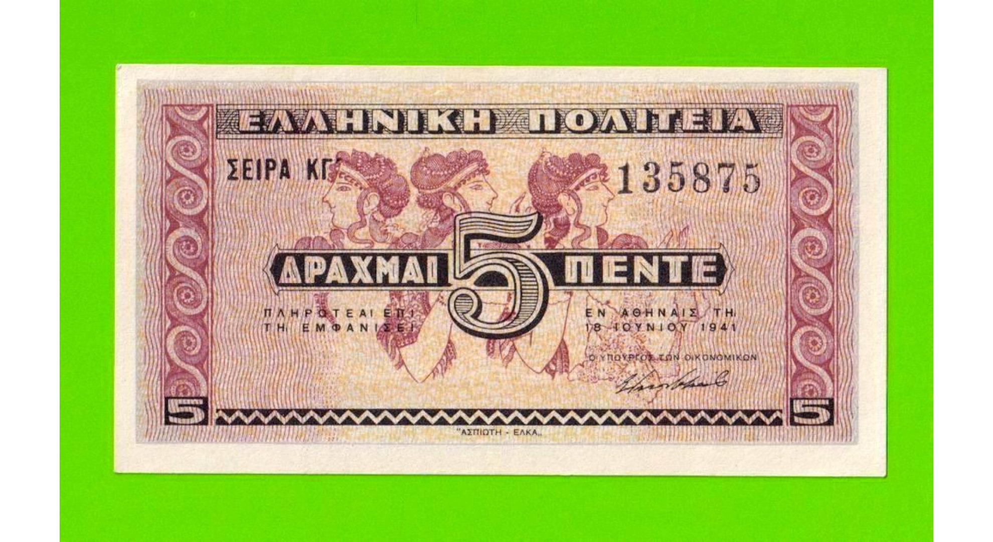 Греция - 5 драхм - 1941 - aUNC!!!