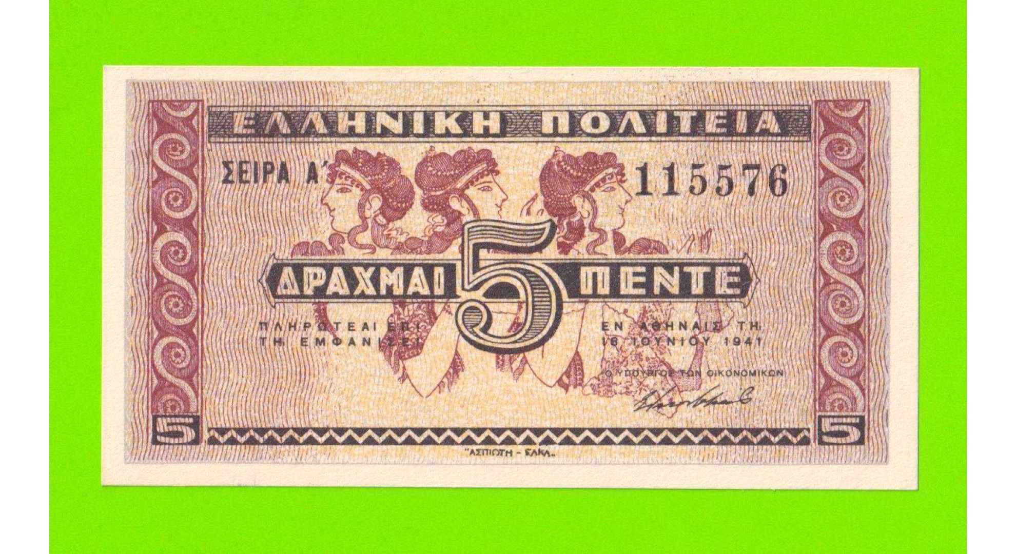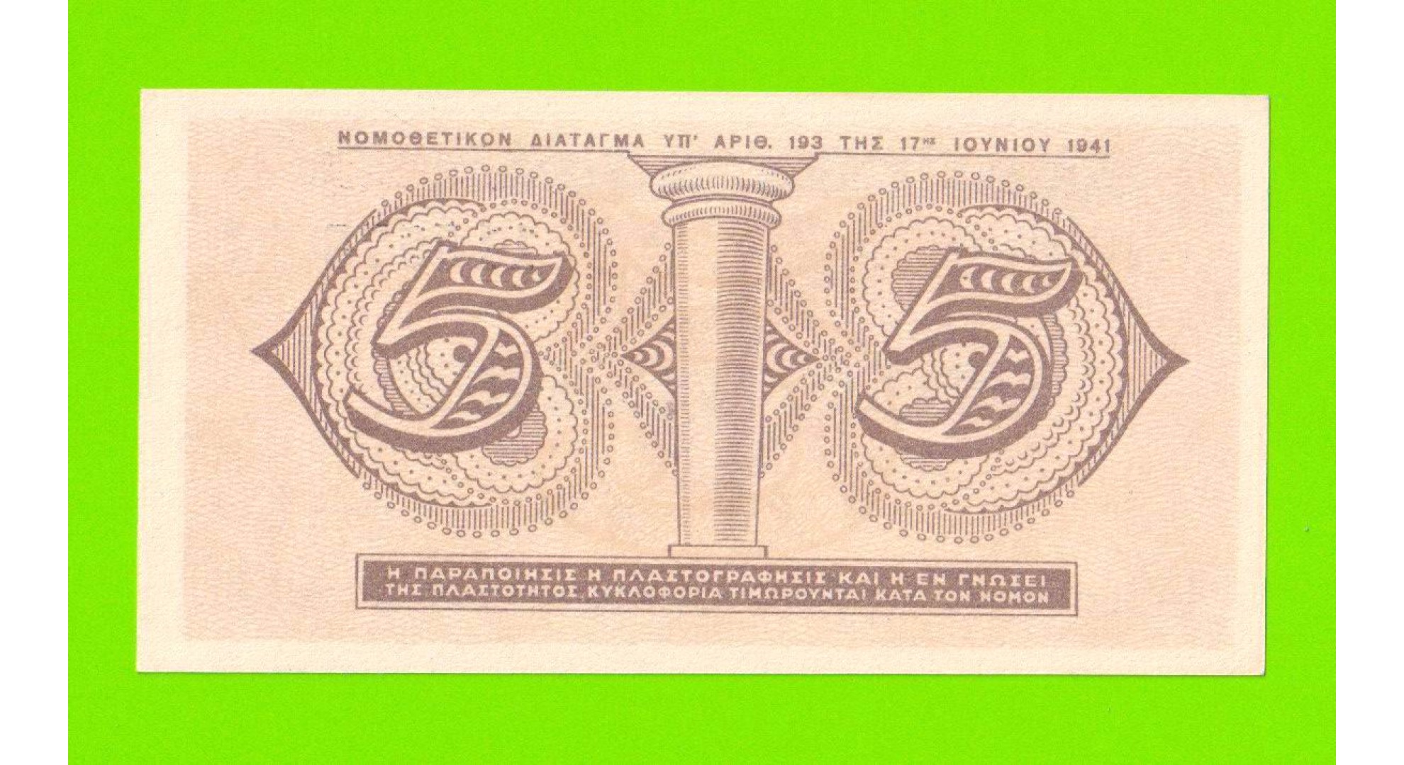 Греция - 5 драхм - 1941 - UNC-!!!