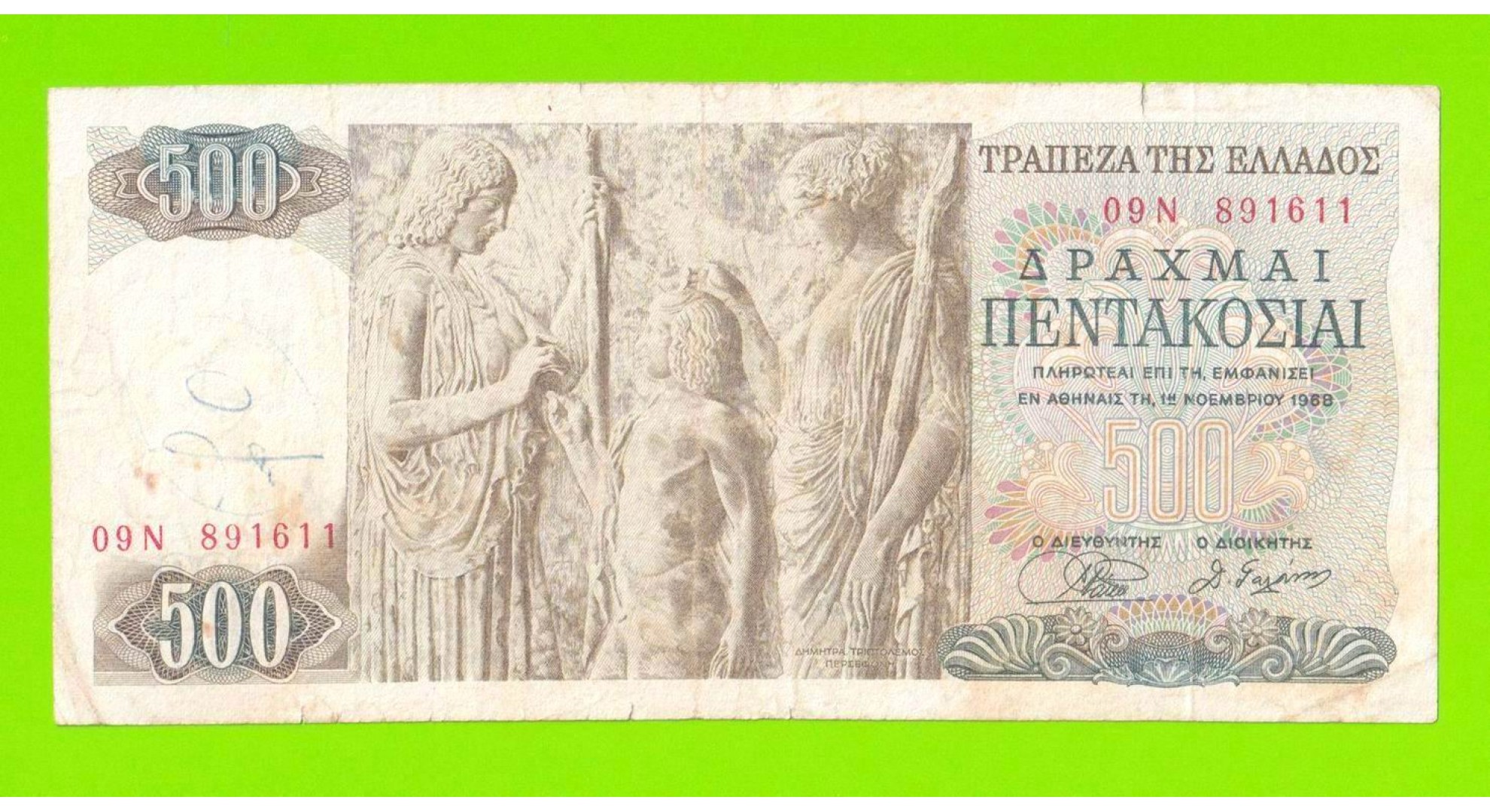 Греция - 500 драхм - 1968