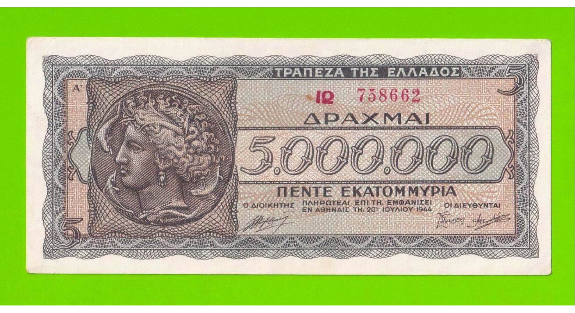 Греция - 5000000 / 5 миллионов драхм - 1944