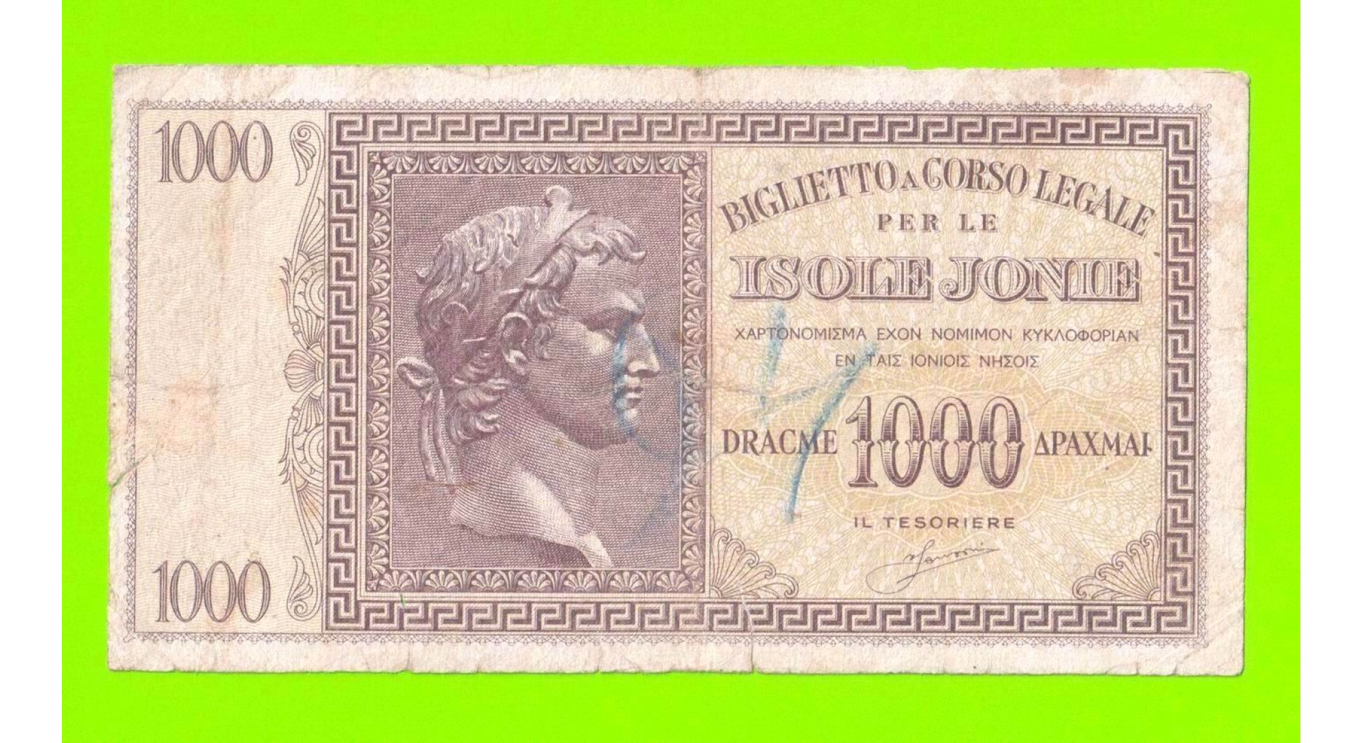 Греция, Ионические острова (Итальянская оккупация) - 1000 драхм - 1941