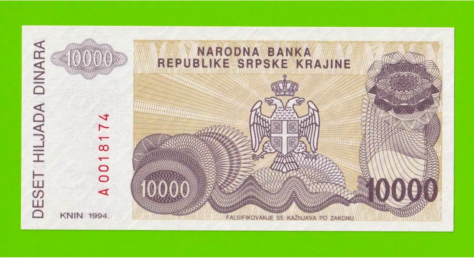 Хорватия (Сербская Краина) - 10000 динаров - 1994 (A) - UNC!!!