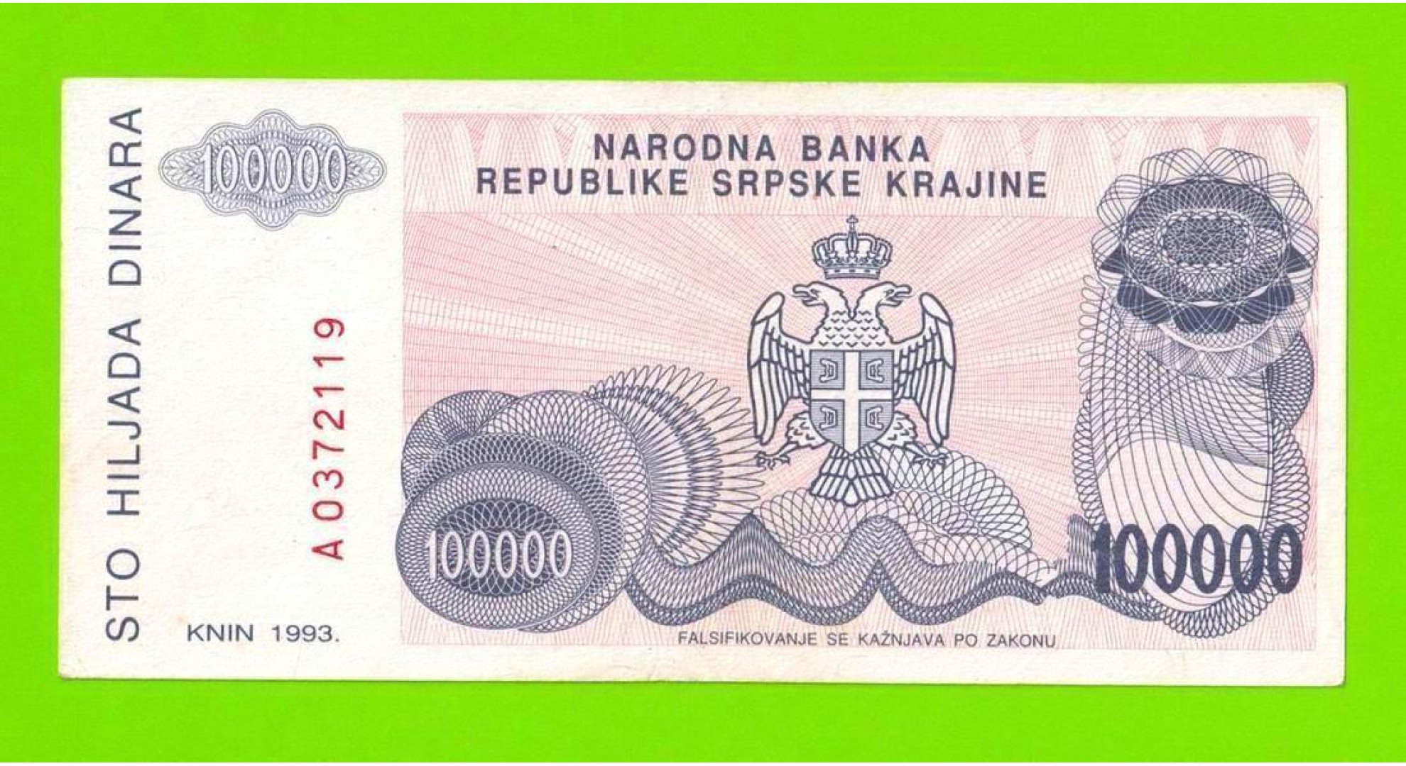 Хорватия (Сербская Краина) - 100000 динаров - 1993 (A)
