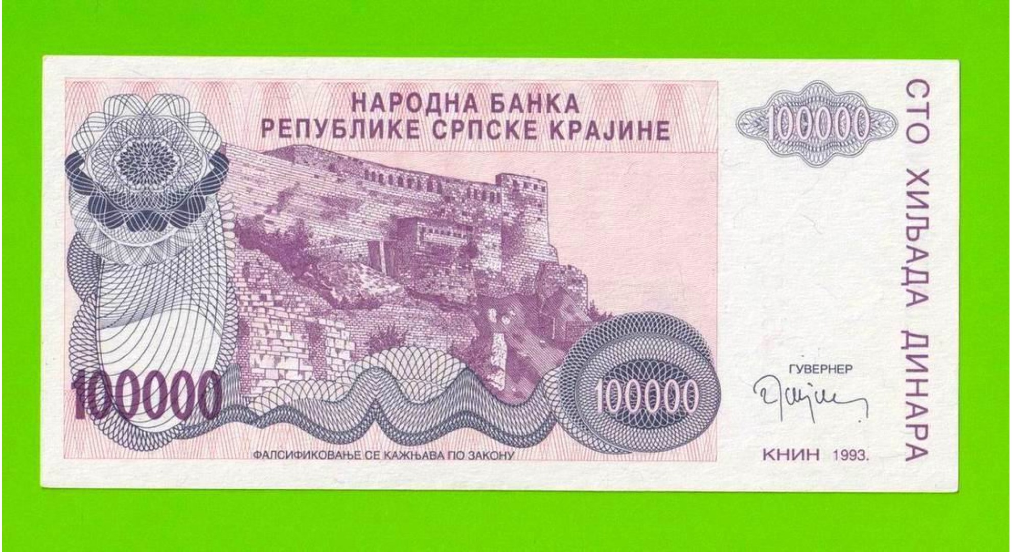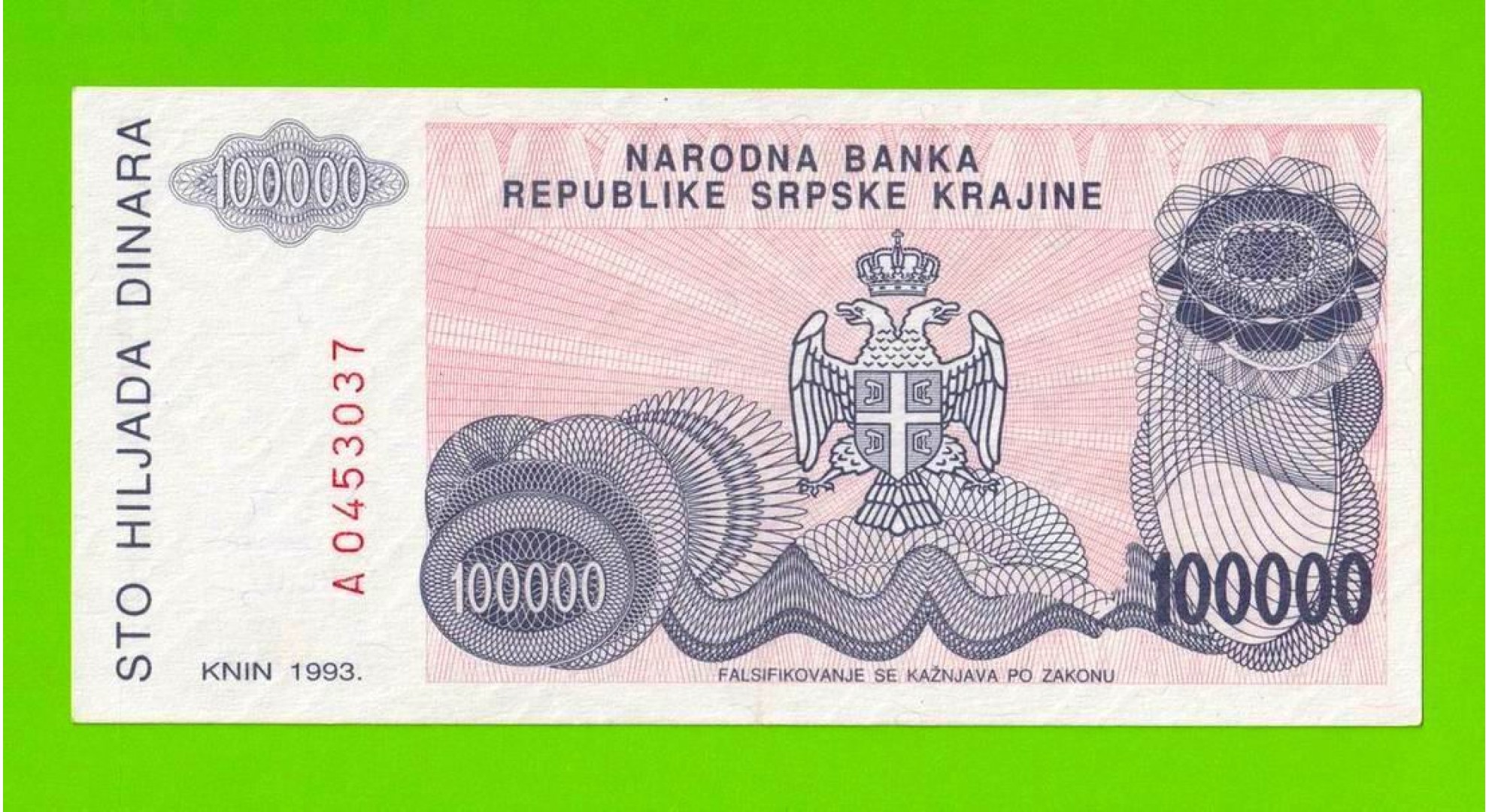 Хорватия (Сербская Краина) - 100000 динаров - 1993 (A) - XF+!!!