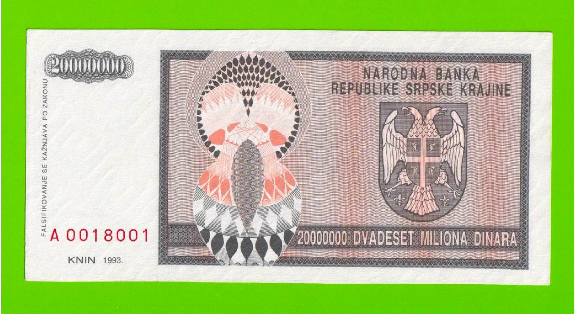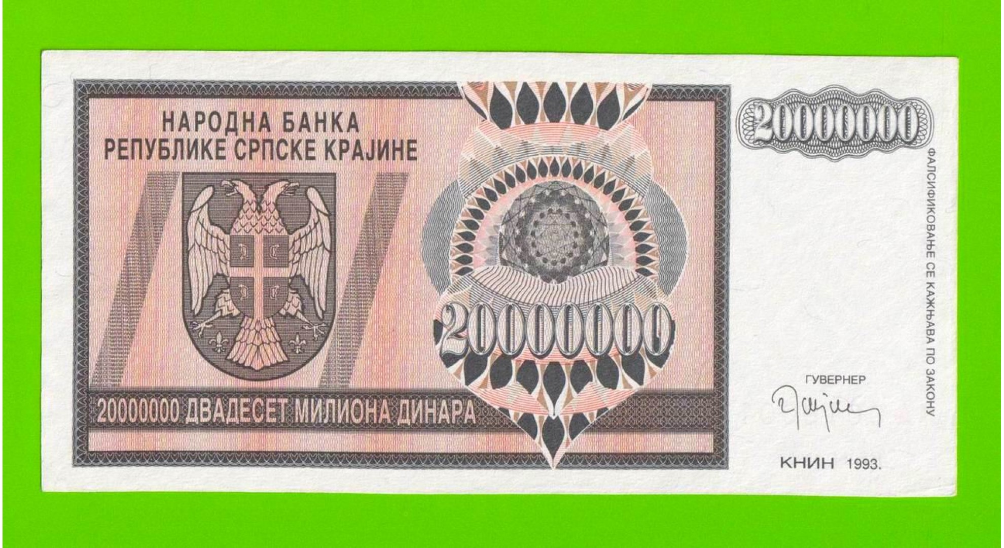 Хорватия (Сербская Краина) - 20000000 / 20 миллионов динаров - 1993 (A) - XF!!!