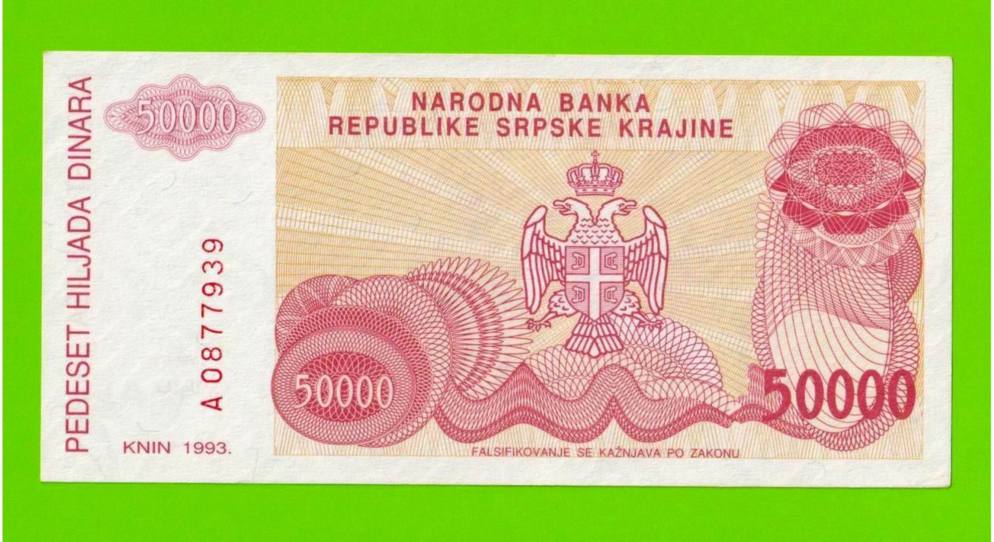 Хорватия (Сербская Краина) - 50000 динаров - 1993 (A) - aUNC!!!