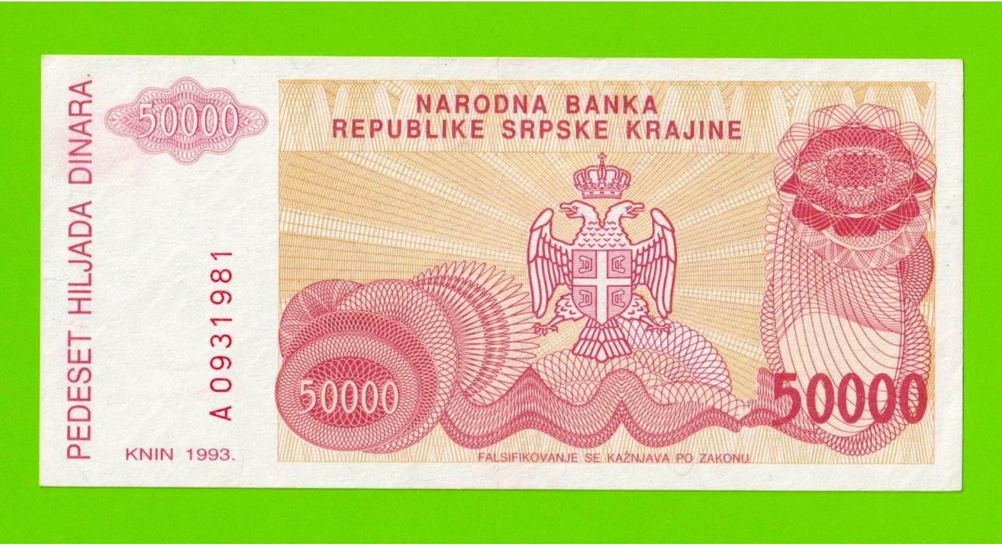Хорватия (Сербская Краина) - 50000 динаров - 1993 (A) - XF+++!!!