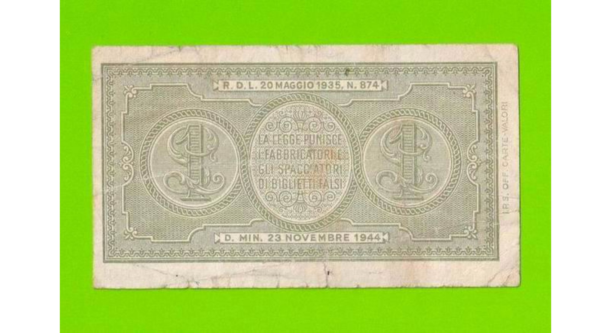Италия - 1 лира - 1944
