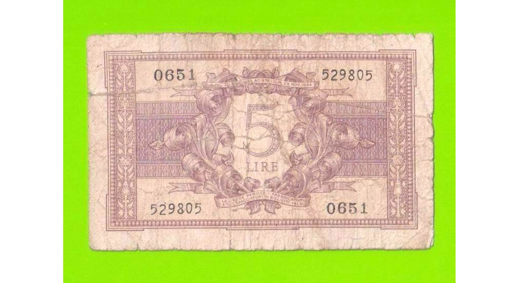 Италия - 5 лир - 1944
