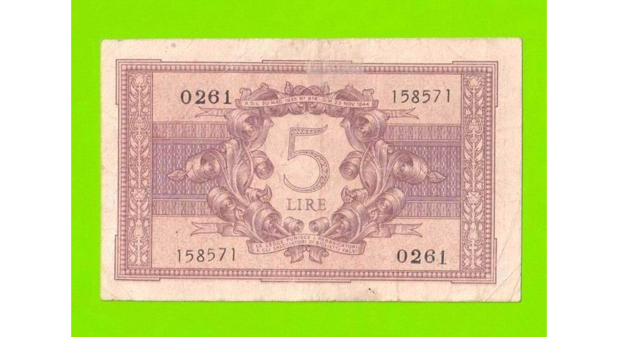Италия - 5 лир - 1944