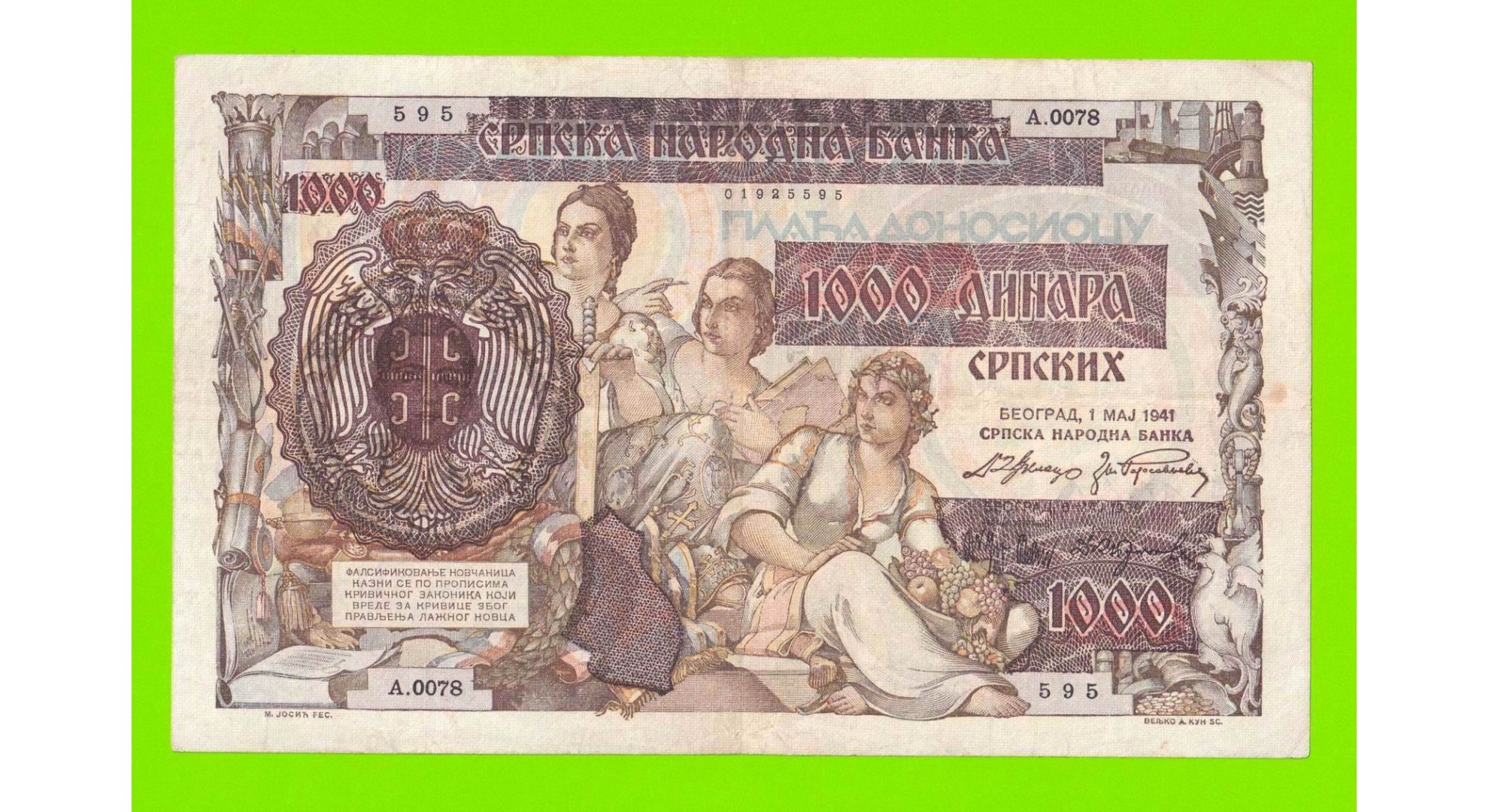 Сербия - 1000 динаров - 1941