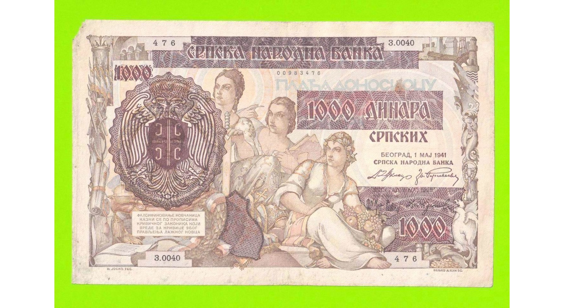 Сербия - 1000 динаров - 1941