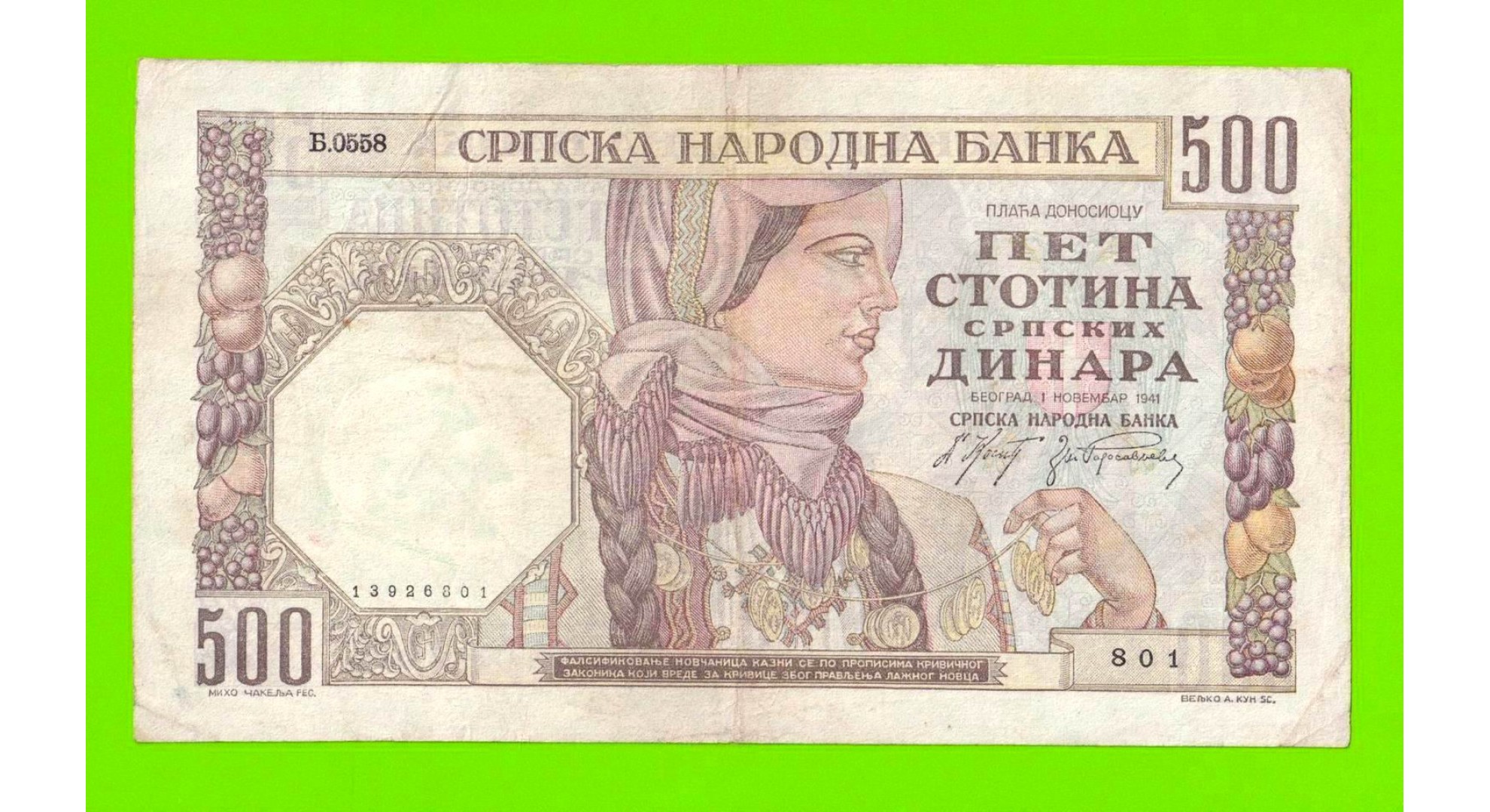 Сербия - 500 динаров - 1941 - в/з мужской профиль
