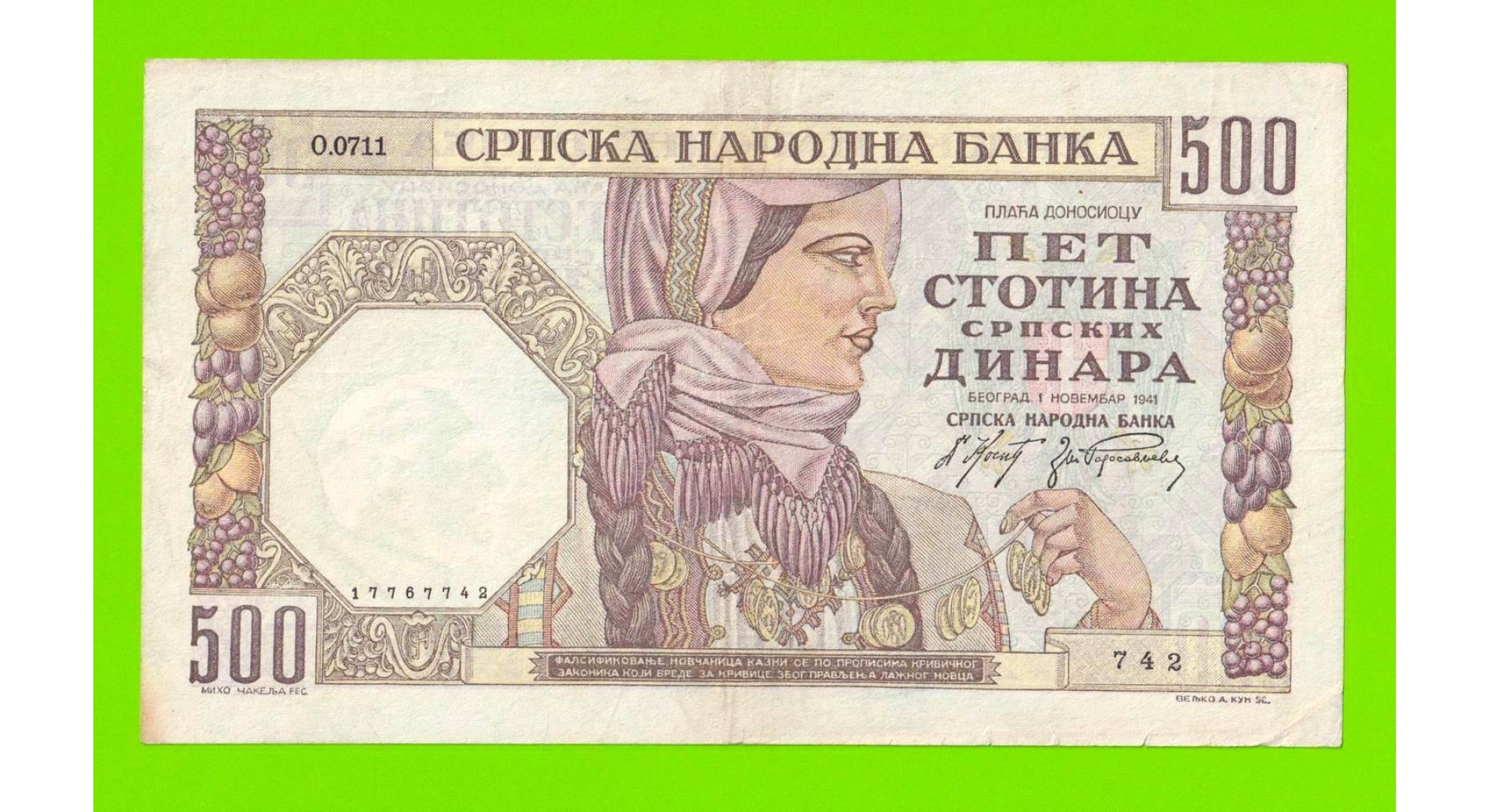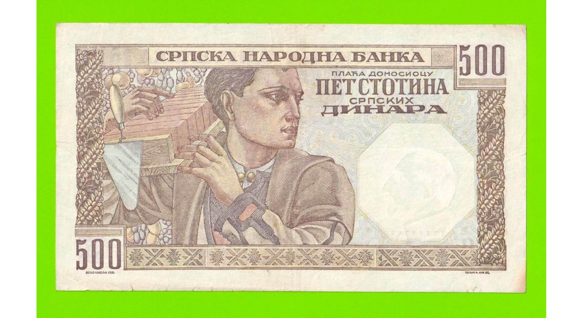 Сербия - 500 динаров - 1941 - в/з мужской профиль