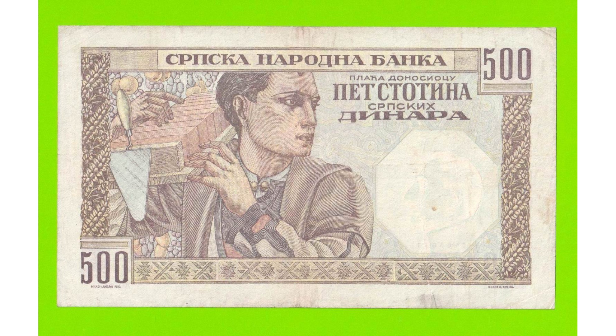 Сербия - 500 динаров - 1941 - в/з мужской профиль