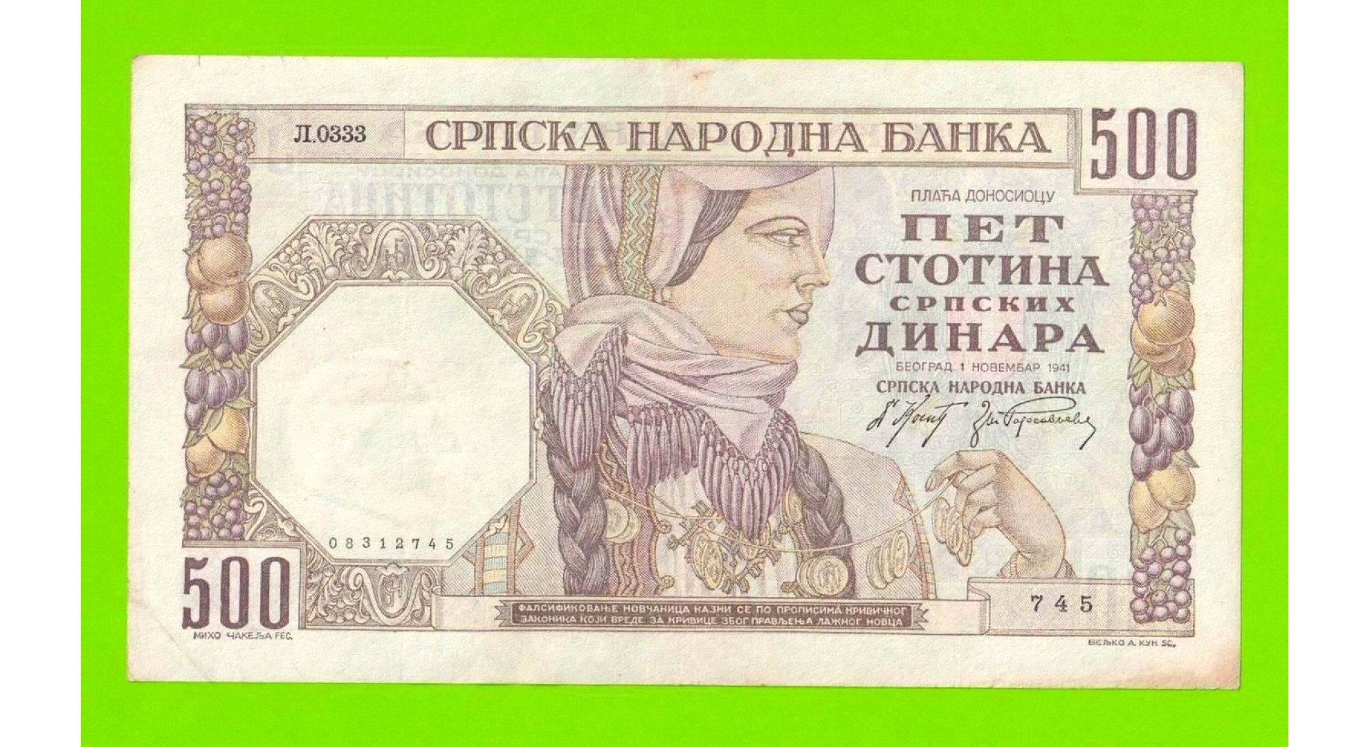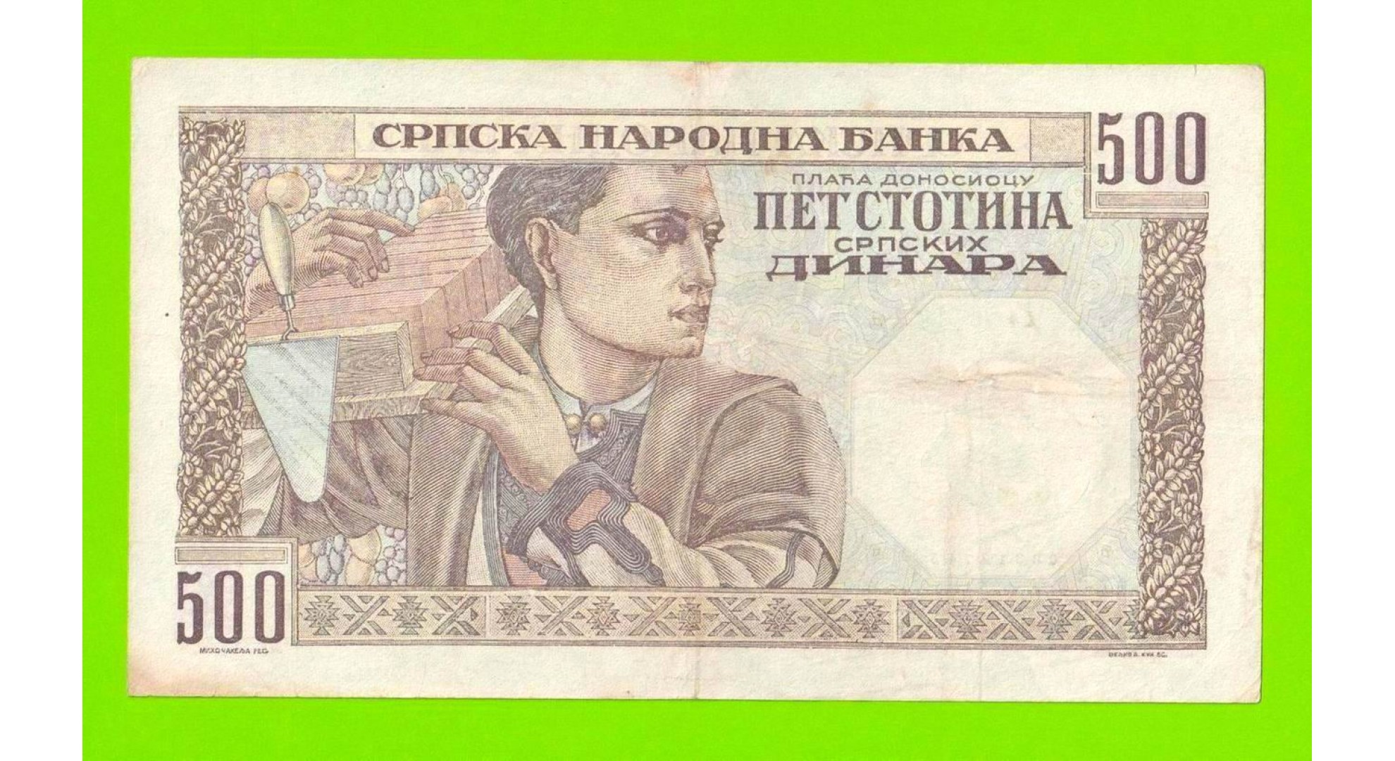 Сербия - 500 динаров - 1941 - в/з мужской профиль