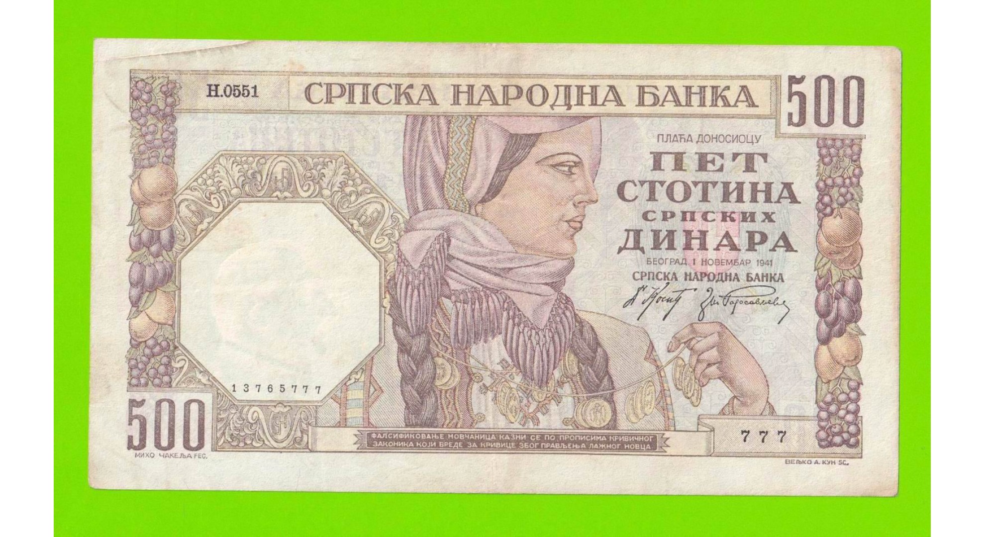 Сербия - 500 динаров - 1941 - в/з мужской профиль