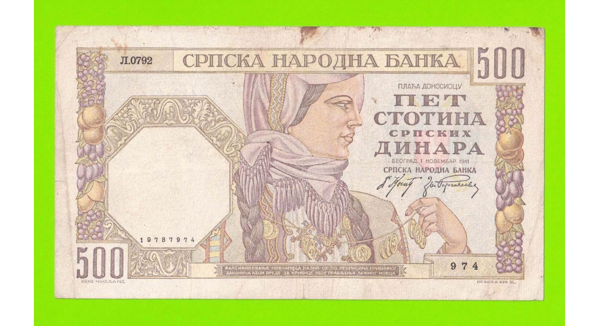 Сербия - 500 динаров - 1941 - в/з женский профиль