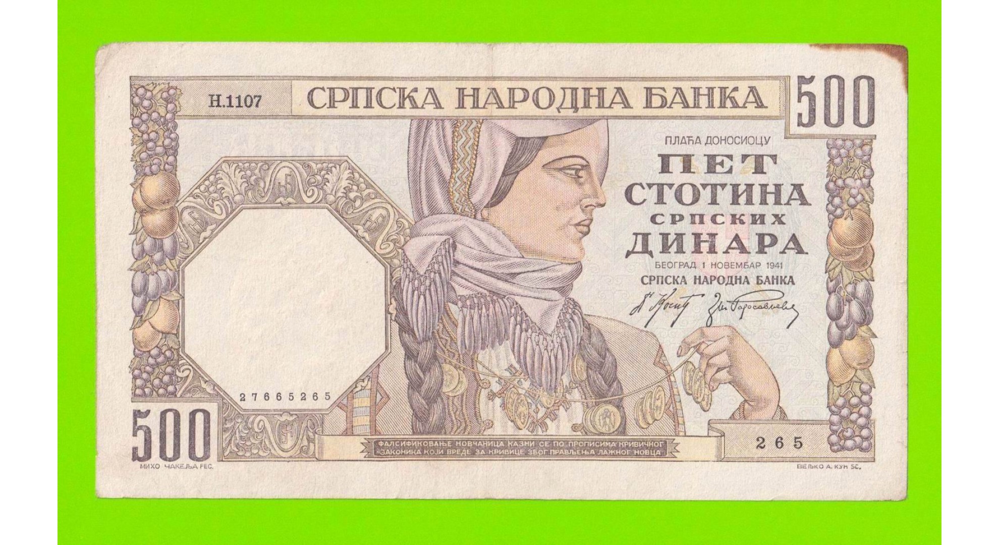 Сербия - 500 динаров - 1941 - в/з женский профиль