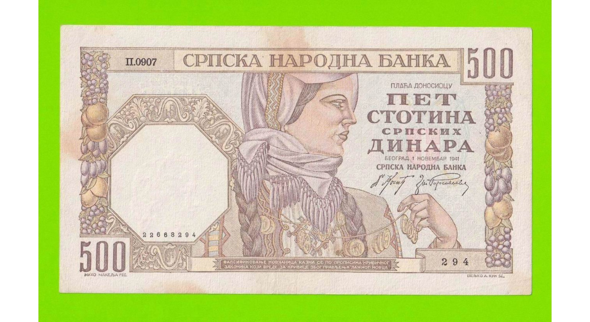 Сербия - 500 динаров - 1941 - в/з женский профиль
