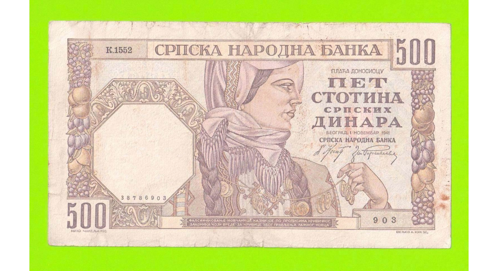 Сербия - 500 динаров - 1941 - в/з женский профиль